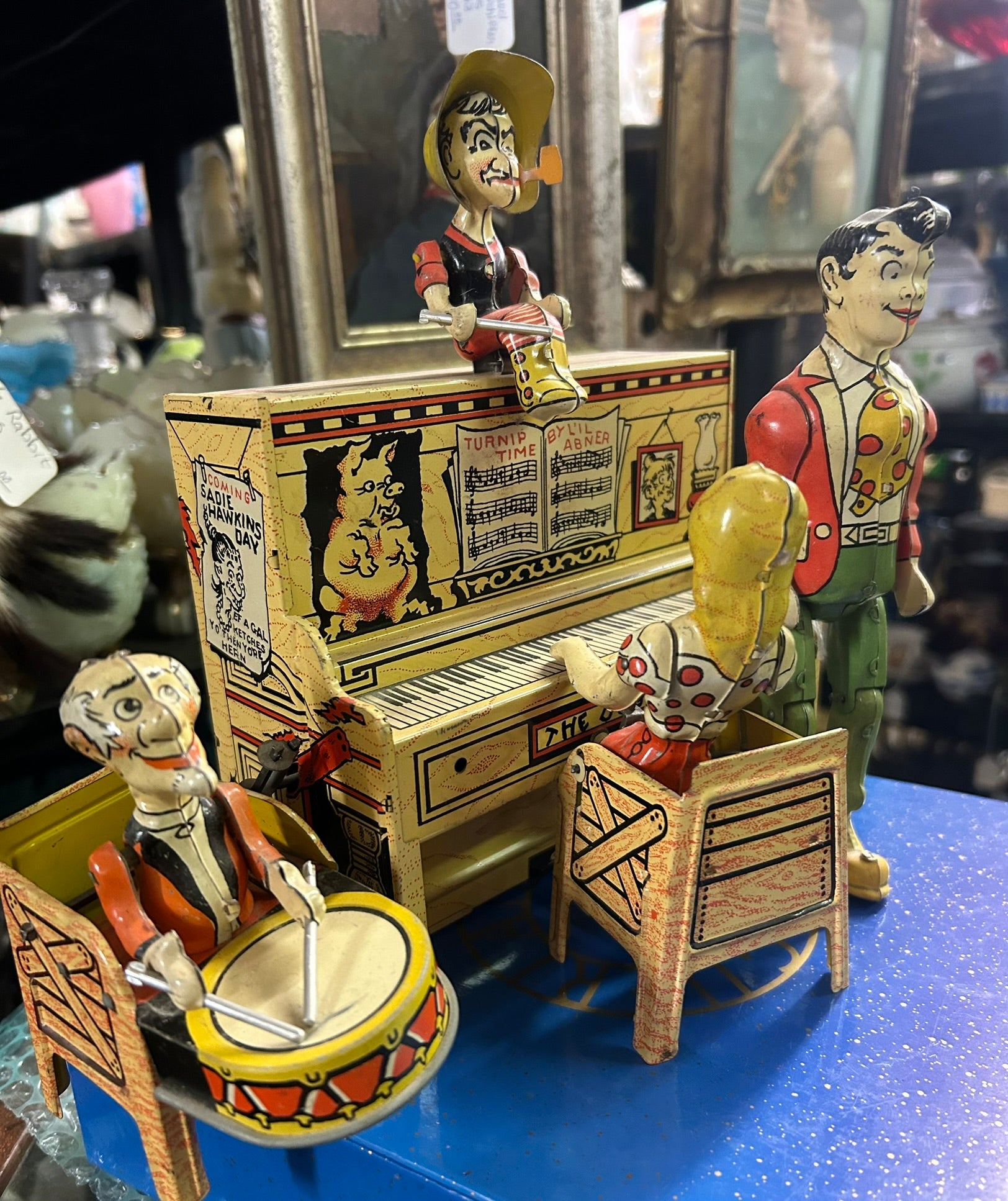 LITTLE ABNER AND DOG PATCH BAND WIND UP TIN TOY IN EXCELLENT SHAPE. CALL OR TEXT FOR MORE INFORMATION
