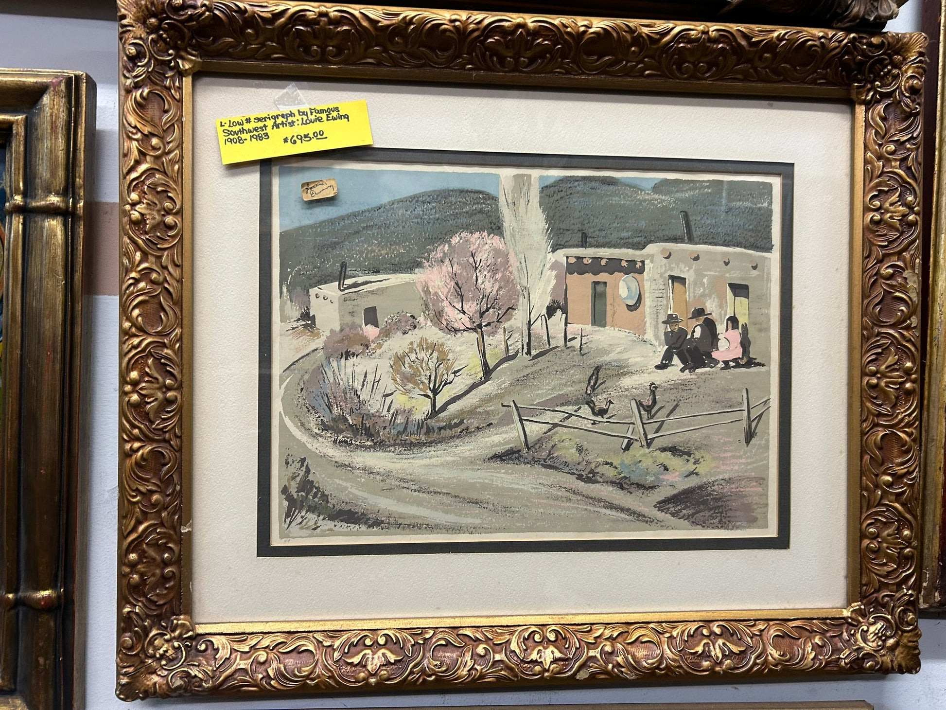 LOUIE EWING 1908-1983 SOUTHWEST ARTIST SERIGRAPH FRAMED 19" X 23" AND IMAGE ONLY 11" X 15". CALL OR TEXT FOR MORE INFORMATION