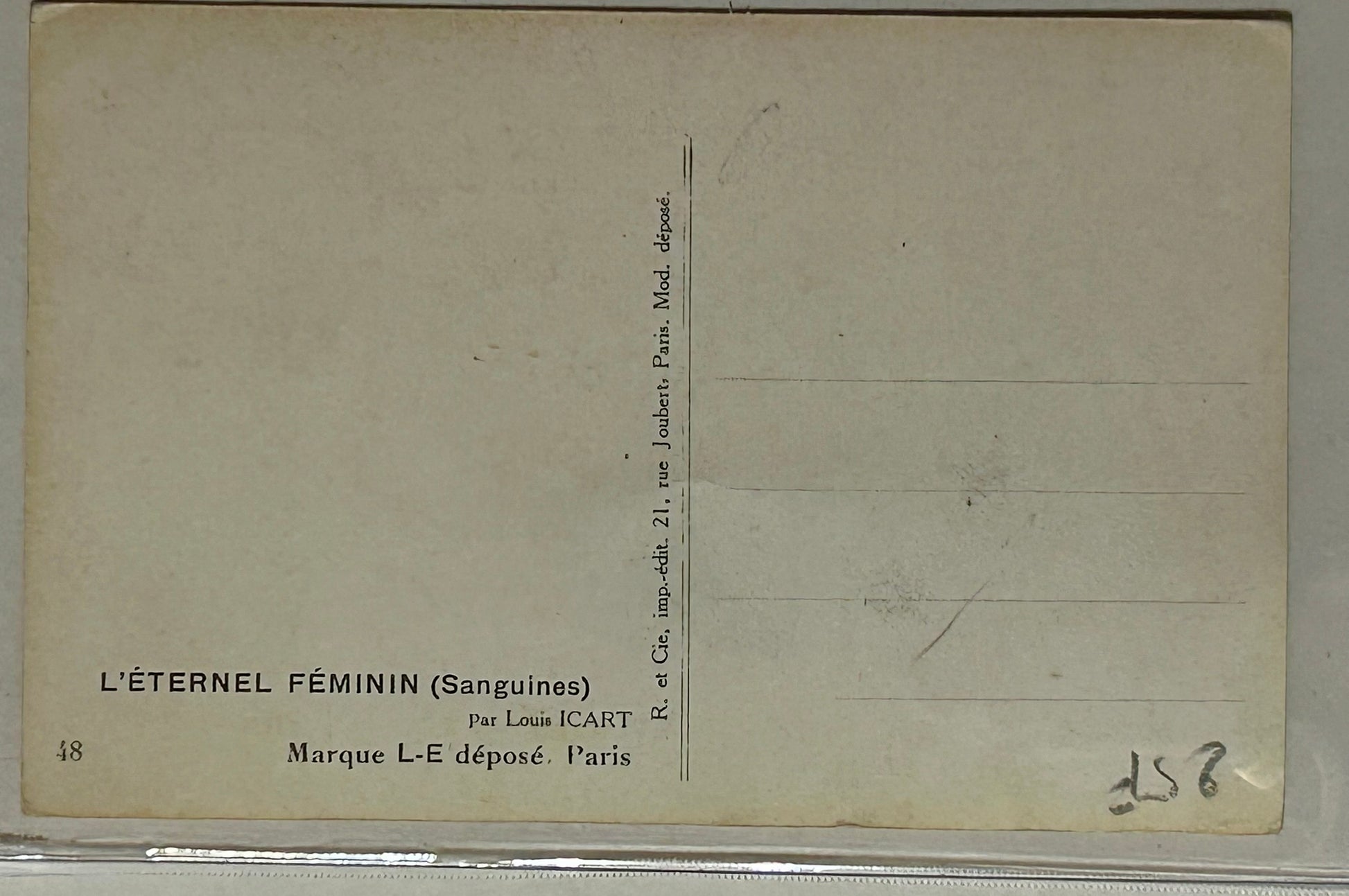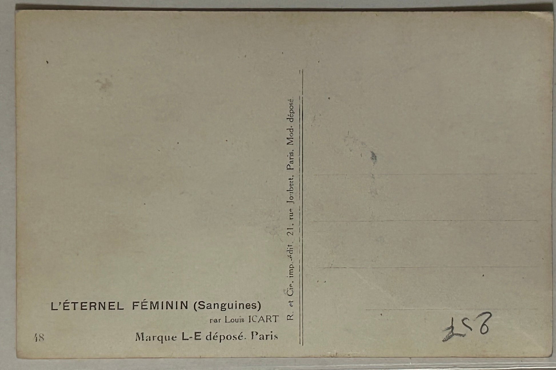 LOUIS ICART PAIR OF UNUSED FRENCH GLAMOUR POSTCARDS INCLUDING ONE THAT IS SEMI NUDE. CALL OR TEXT FOR MORE INFORMATION