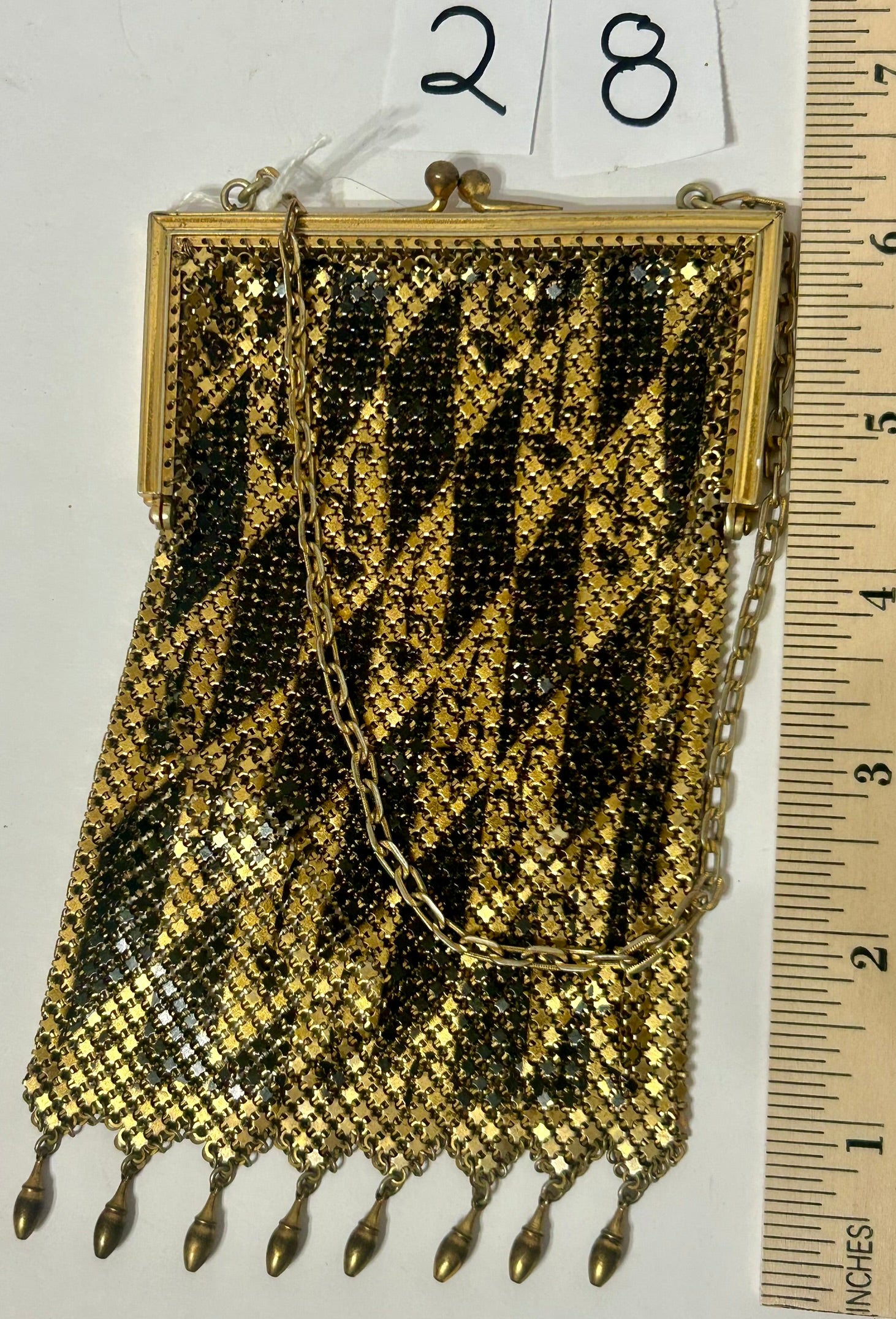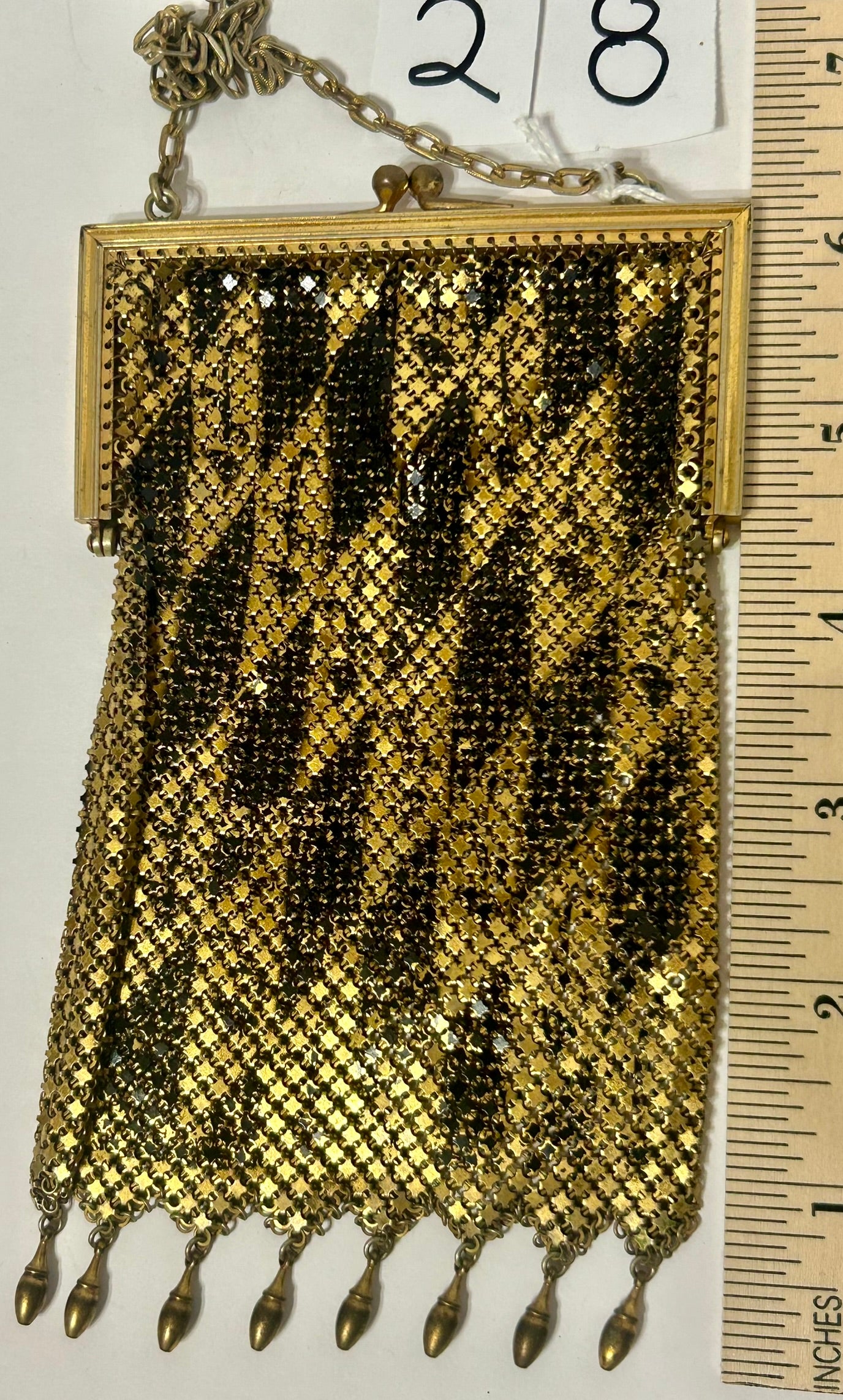 MANDALLIAN BLACK AND GOLD MESH PURSE 6" LONG. CALL OR TEXT FOR MORE INFORMATION
