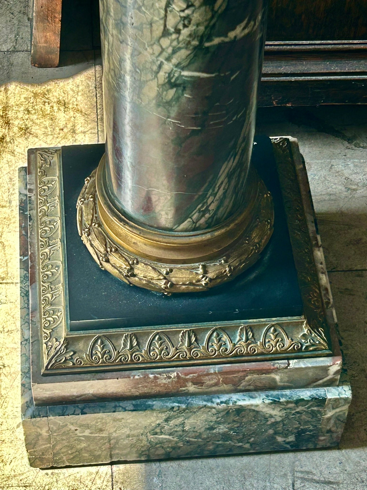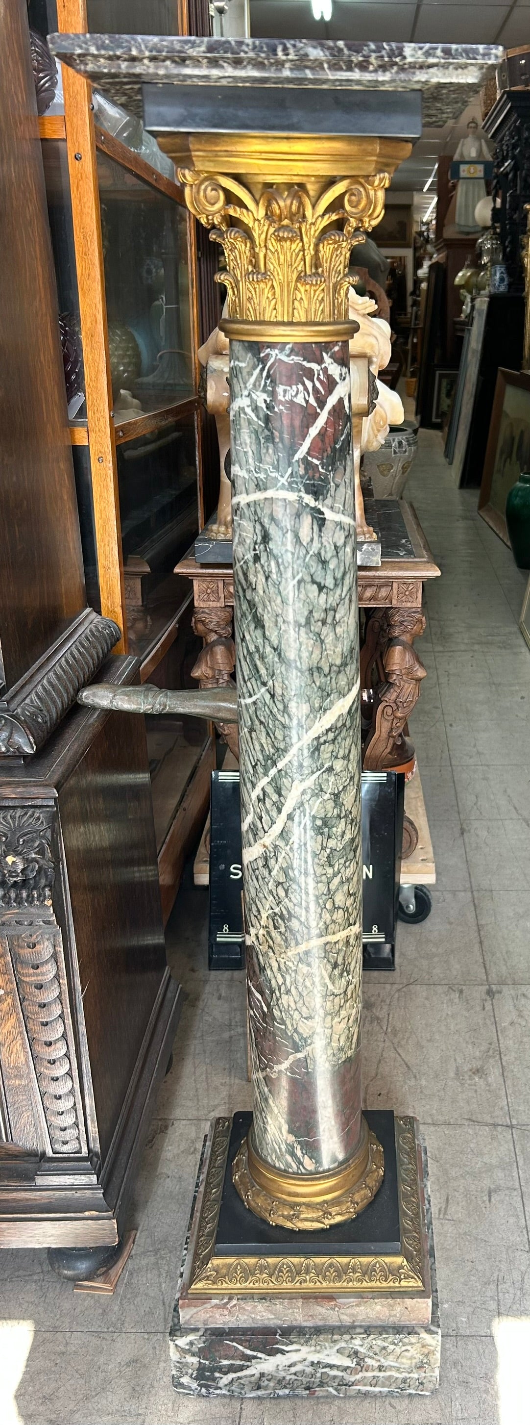 ANTIQUE LATE 1800'S MARBLE AND BRONZE PEDESTAL 45" TALL X 10" DIA. CALL OR TEXT FOR MORE INFORMATION