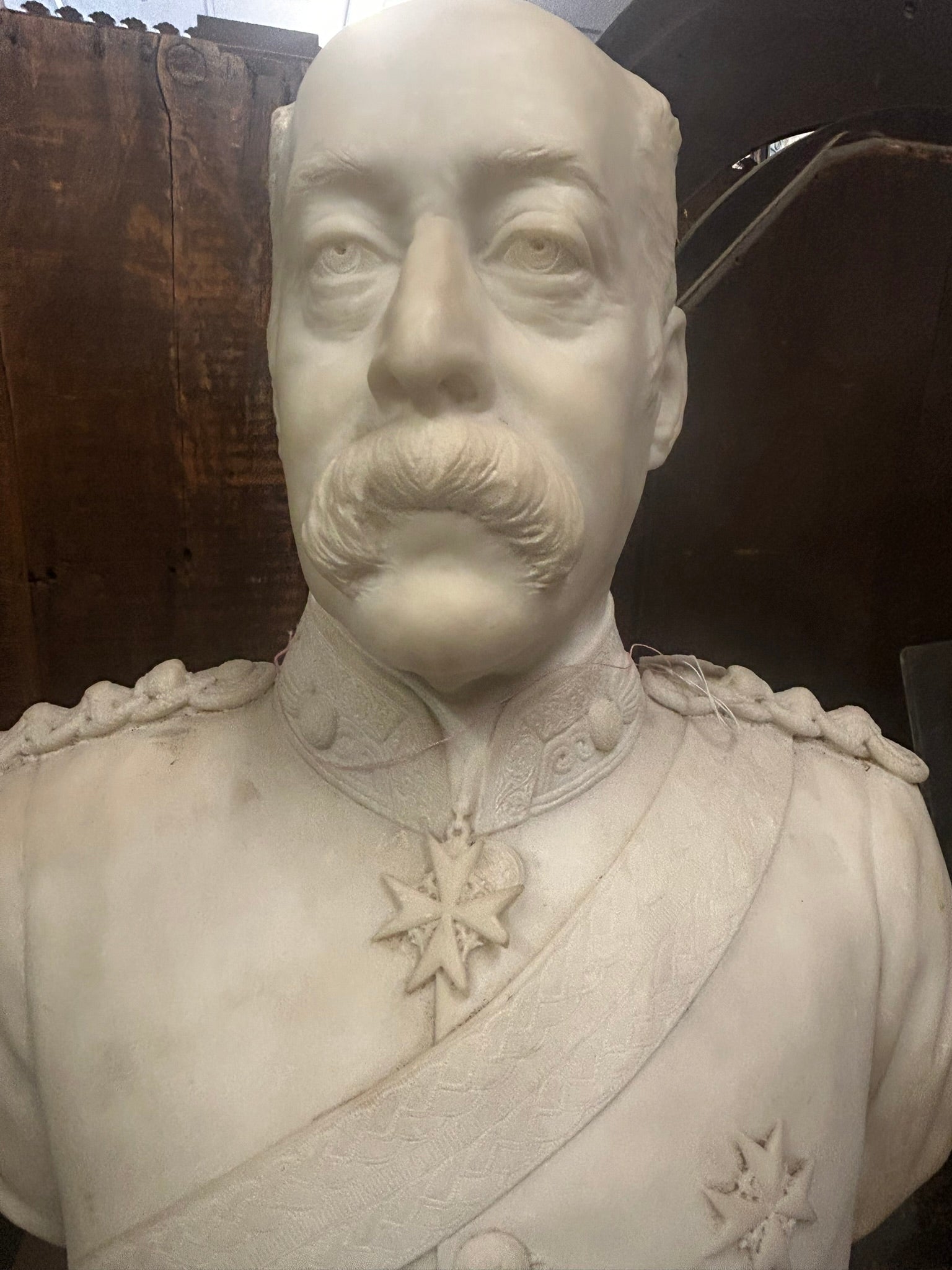 MARBLE BUST BY FAMOUS RUSSIAN SCULPTOR LEOPOLD BERNARD BERNSTAMM 1859-1939 OF GENERAL 31" TALL. CALL, TEXT, OR E-MAIL FOR MORE INFORMATION