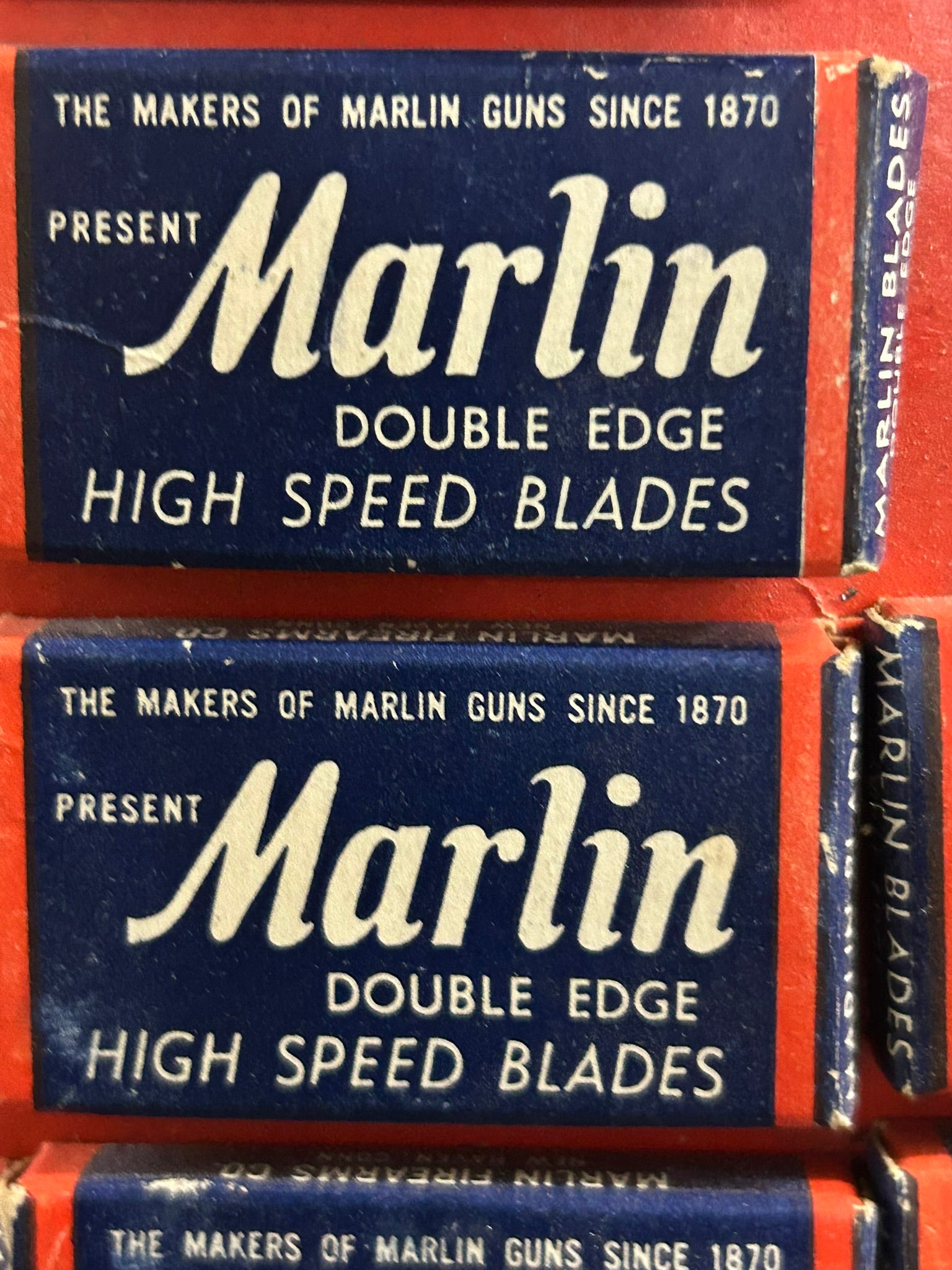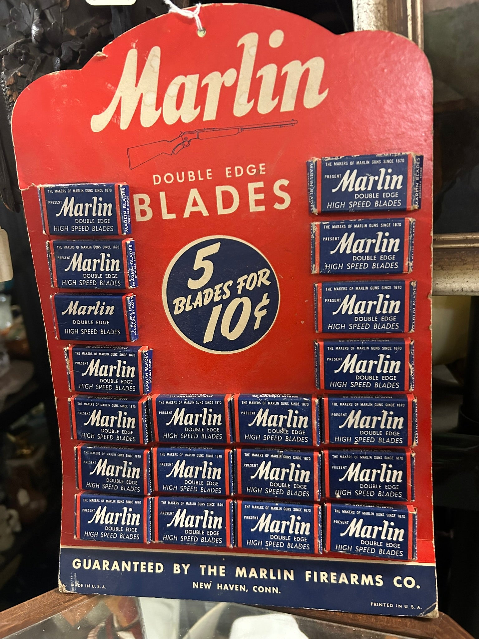 MARLIN FIREARMS COMPLETE RAZOR BLADES DISPLAY WITH FULL BOXES 13" X 9". CALL OR TEXT FOR MORE INFORMATION