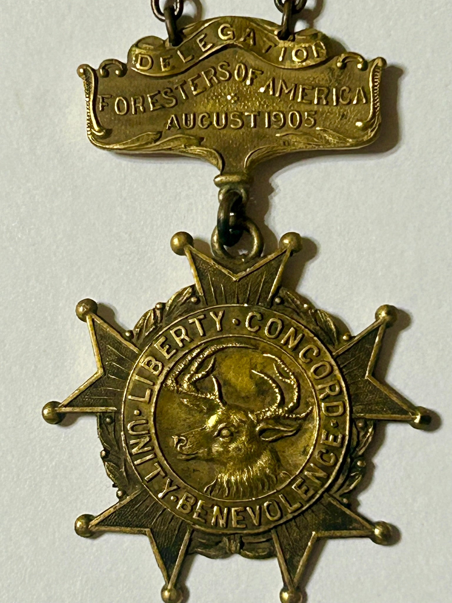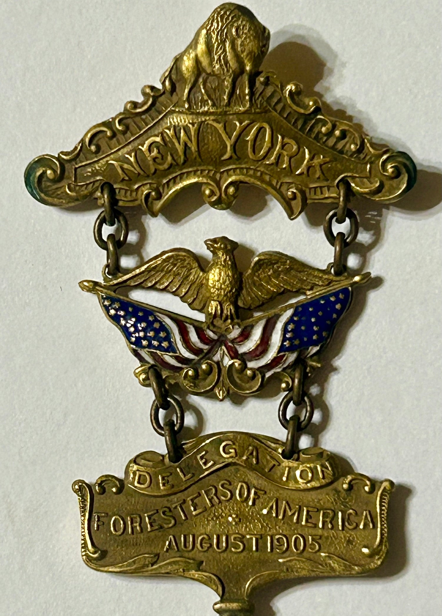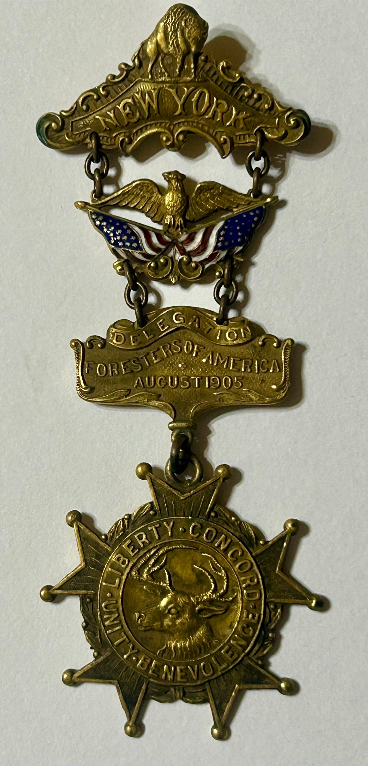 NEW YORK DELEGATION FORESTERS OF AMERICA 1905 FANCY ENAMELED MEDAL
