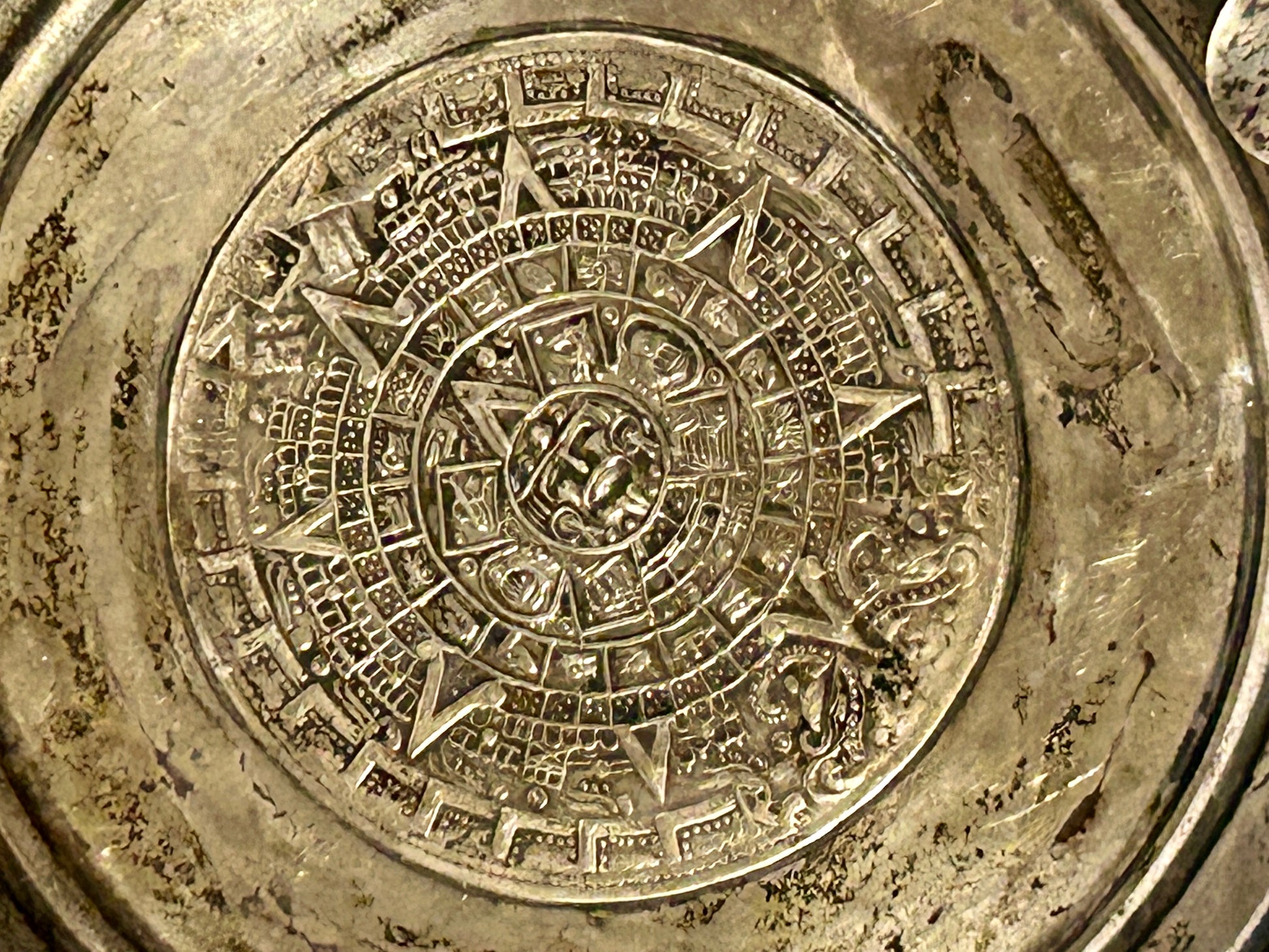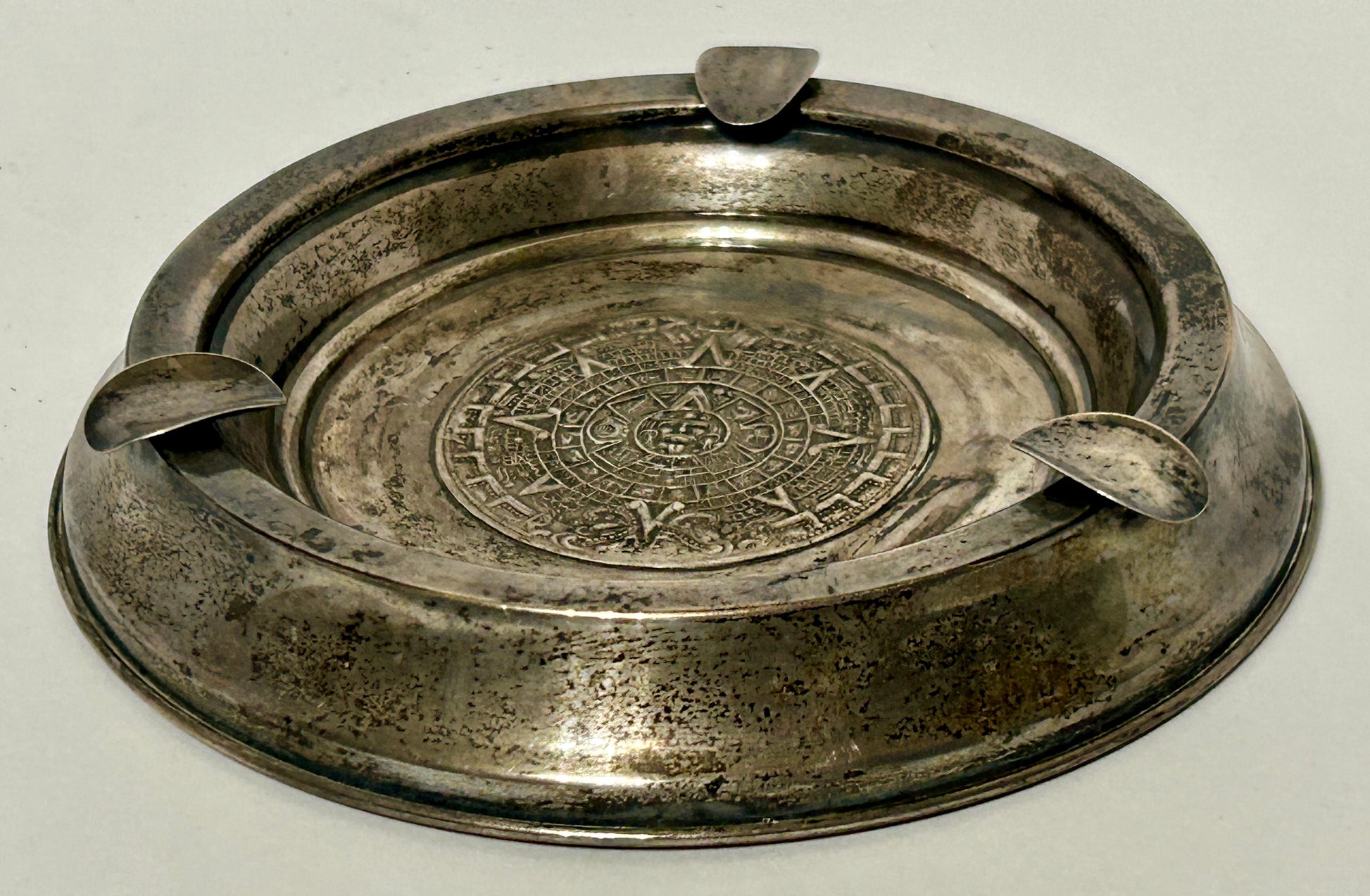 MEXICAN SILVER DECORATED ASHTRAY (WEIGHTED) 6" DIAMETER. SHIPPING IS EXTRA COST SO CALL OR TEXT US TO FIND OUT WHAT IT WILL COST US TO SHIP TO YOUR ADDRESS