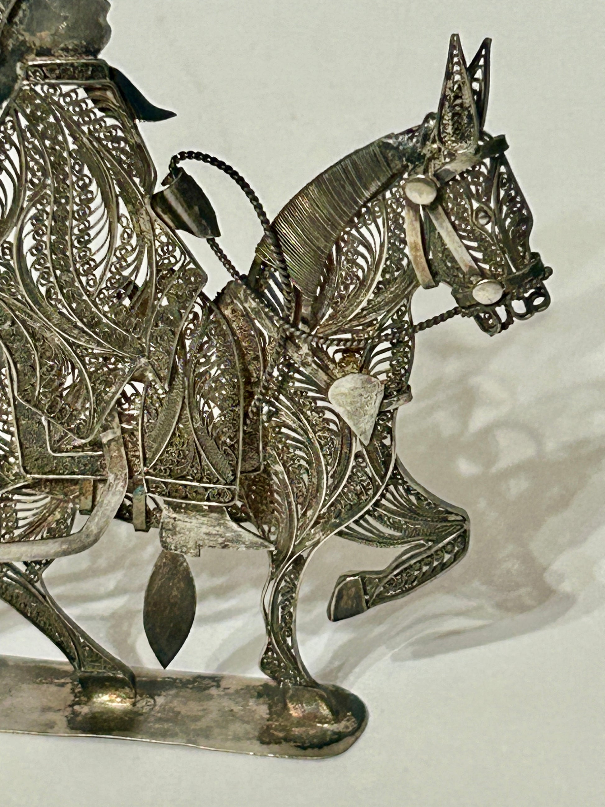 MEXICAN 925 SILVER FILIGREE WIRE RIDER ON HORSE 5 1/2" TALL X 5" TALL AND 60,0 GRAMS WEIGHT. SHIPPING IS EXTRA SO CALL OR TEXT TO FIND OUT HOW MUCH SHIPPING WILL COST