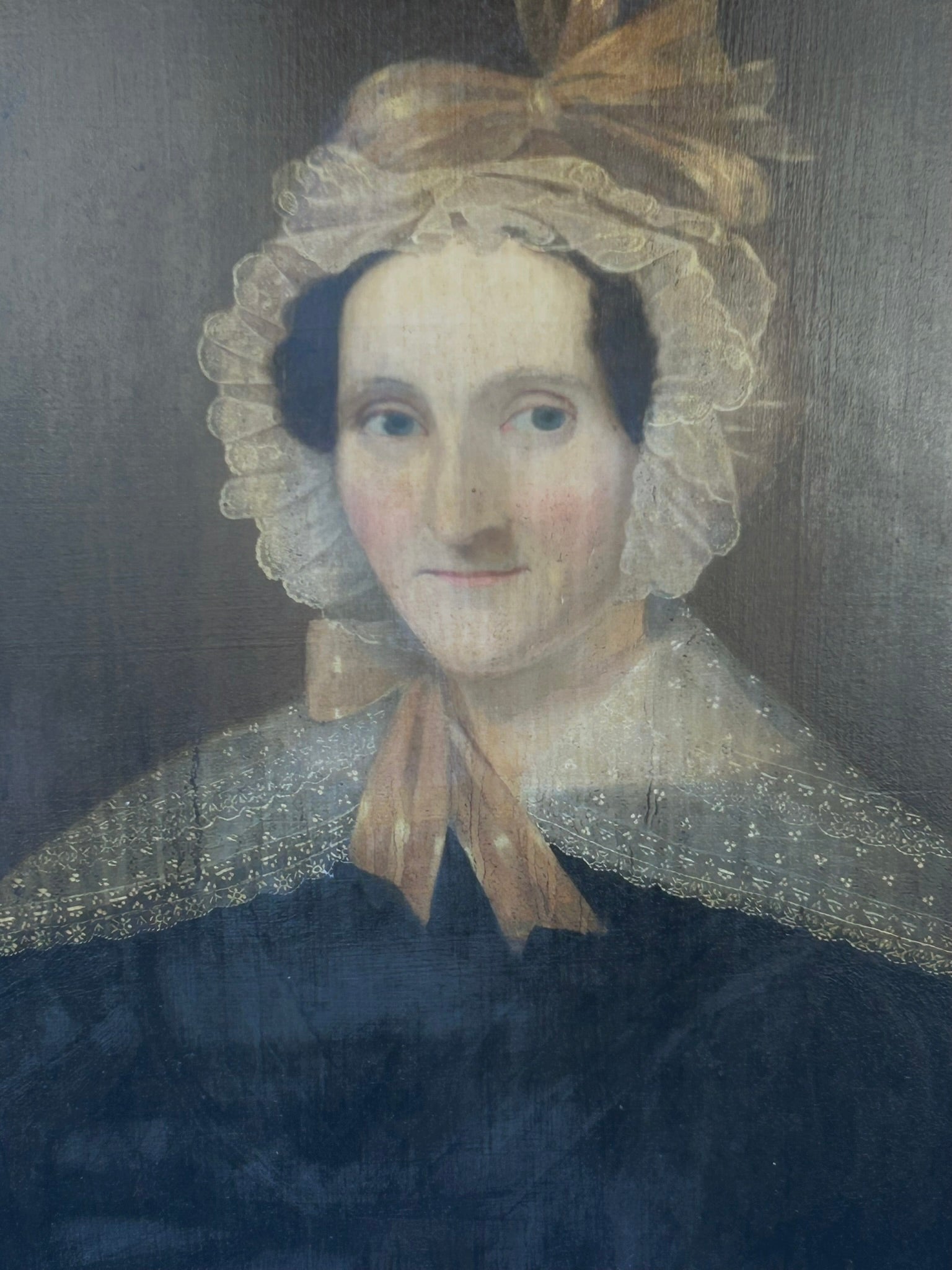 MID 1800'S PAIR OF PORTRAITS OF MAN AND WOMAN ON WOOD PANELS CALL OR TEXT FOR PRICE. CALL OR TEXT FOR MORE INFORMATION