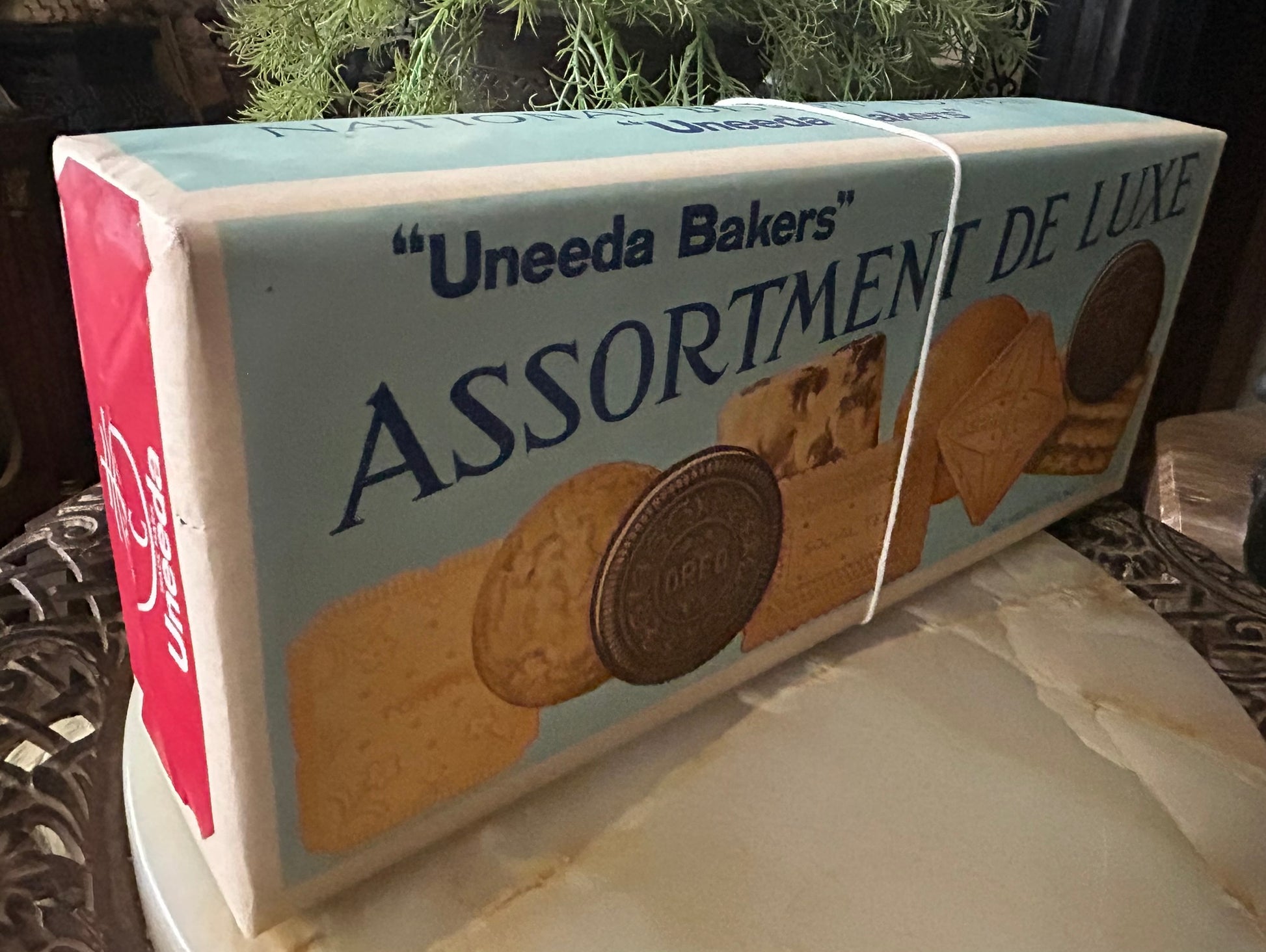 NABISCO BAKERS ASSORTMENT DE LUXE ANTIQUE DISPLAY BOX 11" X 4 1/2". CALL OR TEXT FOR MORE INFORMATION