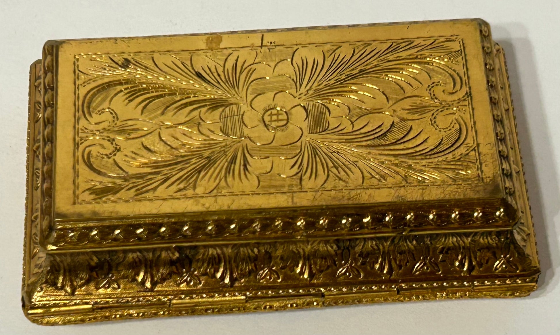 NAPOLEONIC ITALIAN GILT BOX 4" LONG X 1" TALL. CALL OR TEXT FOR MORE INFORMATION
