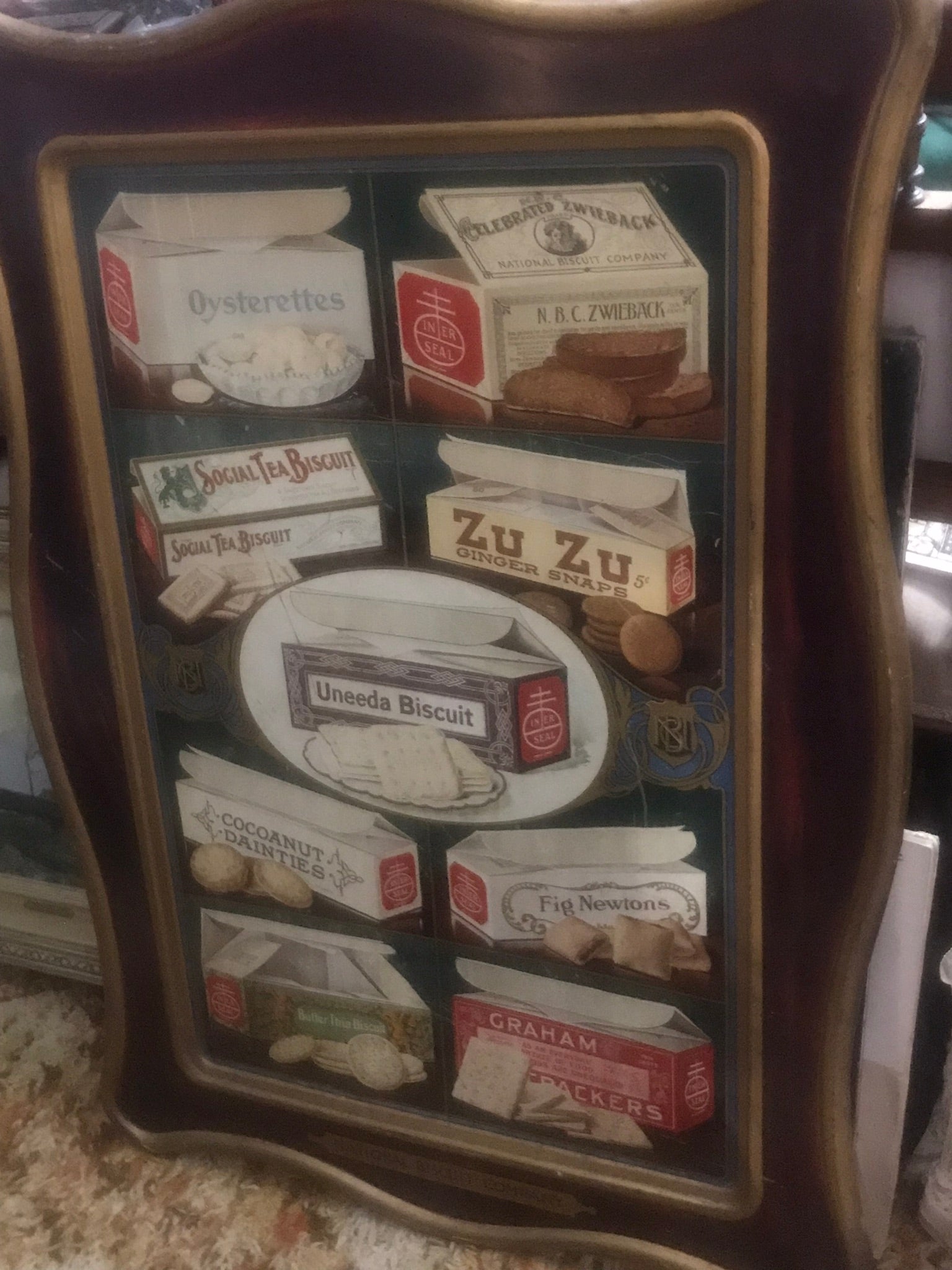 Antique large tin advertising sign for Nabisco Biscuit Company in overall good shape except for a few scratches. Please call, text, or email if you would like additional photos or more information.