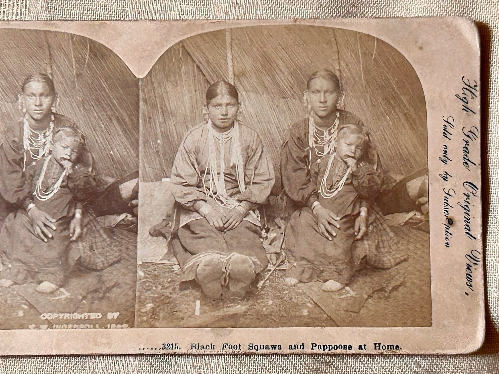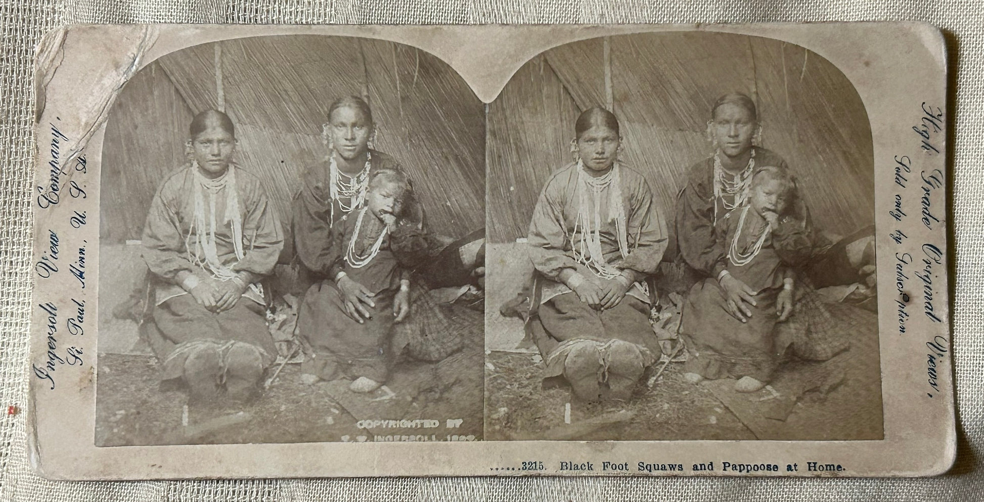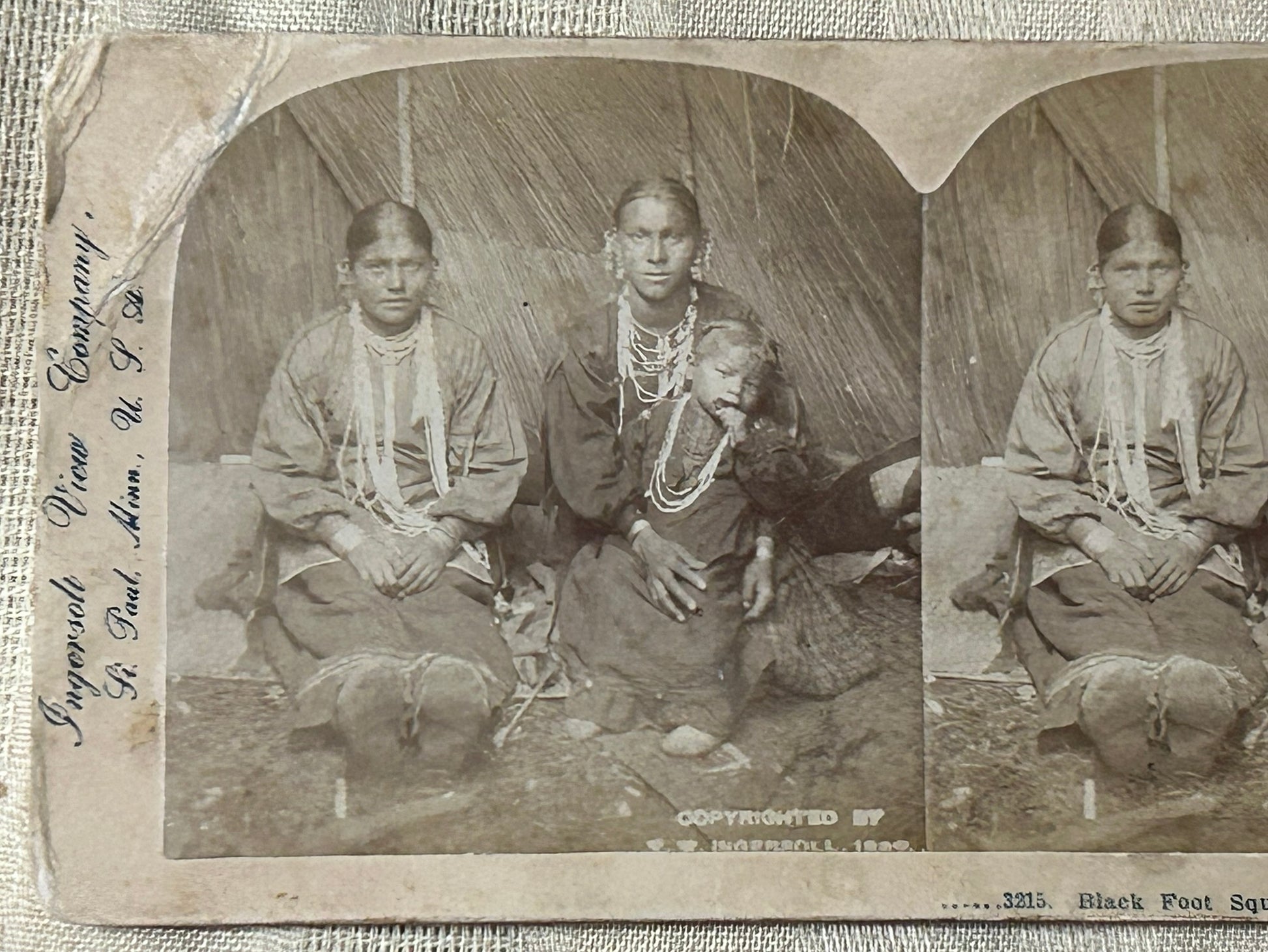 NATIVE AMERICAN PHOTO STEREO VIEW OF BLACK FOOT SQUAWS. CALL OR TEXT FOR MORE INFORMATION