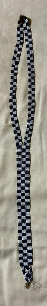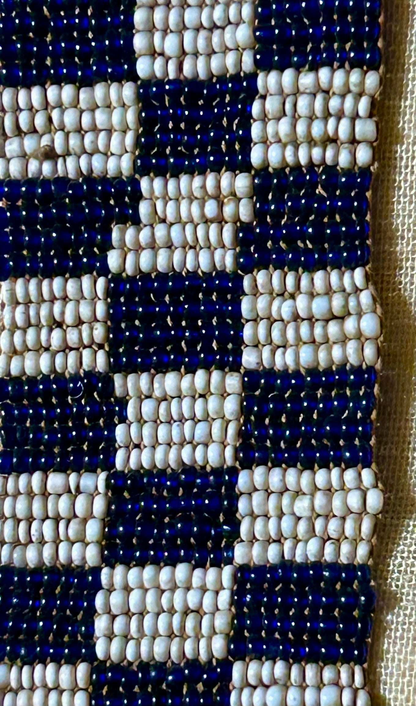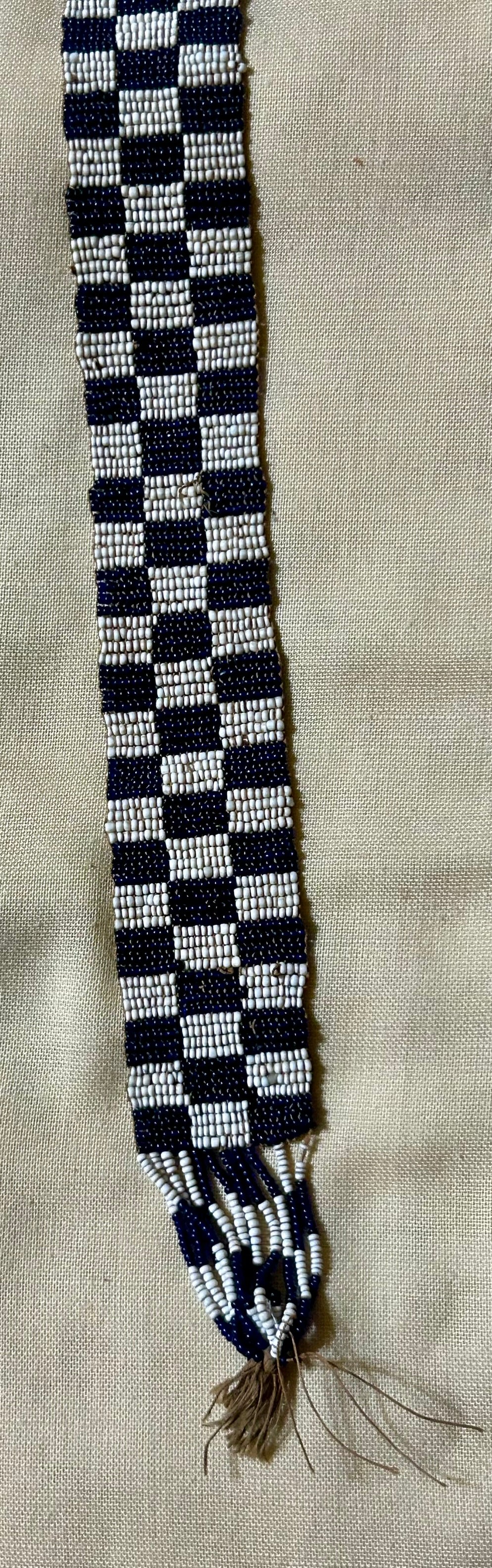NATIVE AMERICAN LOOM BEADED BLUE AND WHITE NECKLACE 29" LONG. CALL OR TEXT FOR MORE INFORMATION