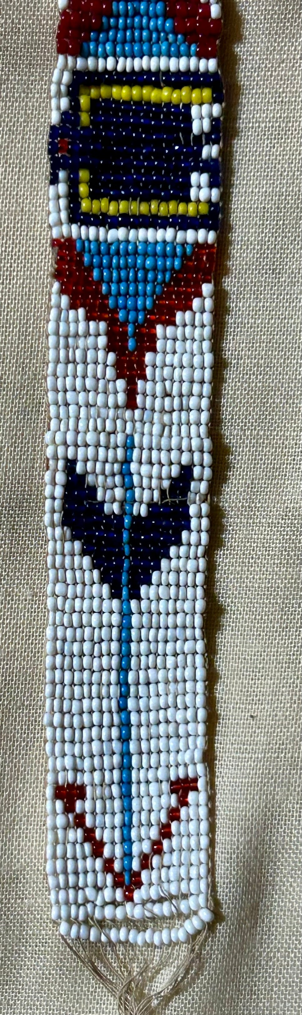 NATIVE AMERICAN LOOM BEADED STRIP WITH ARROW DESIGNS 15 1/2" LONG. CALL OR TEXT FOR MORE INFORMATION