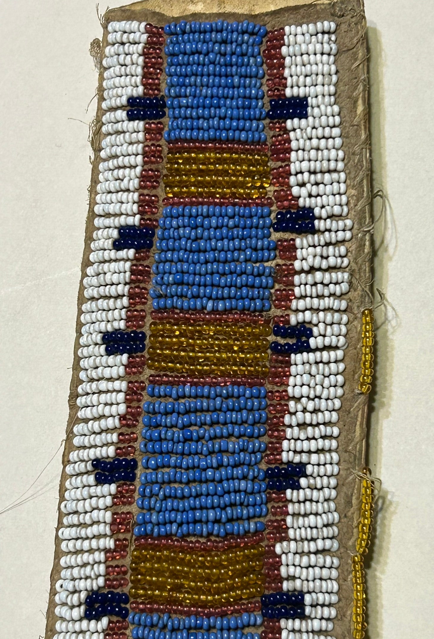 NATIVE AMERICAN SIOUX CIRCA 1890 BEADED KNIFE SHEATH SINEW SEWN 8 1/2" WITH SOME MISSING BEADS. CALL OR TEXT FOR MORE INFORMATION