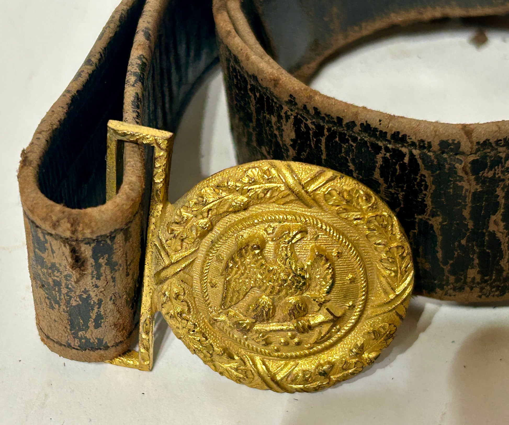 NAVY BUCKLE WITH BELT - LEATHER IN POOR CONDITION. CALL OR TEXT FOR MORE INFORMATION