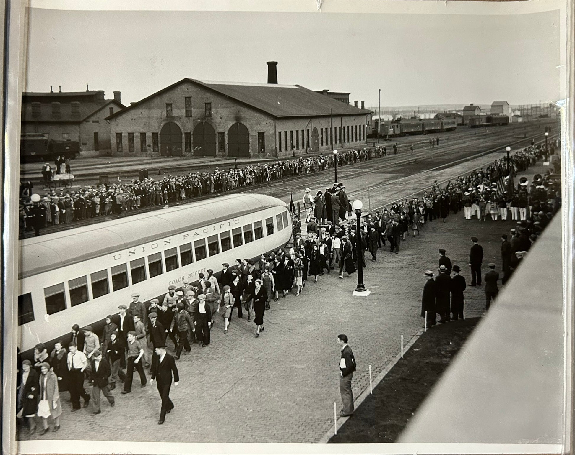 NORTH PLATTE NEBRASKA RAILROAD DEPOT EARLY PHOTOGRAPH OF CELEBRATION 8" X 10". CALL OR TEXT FOR MORE INFORMATION