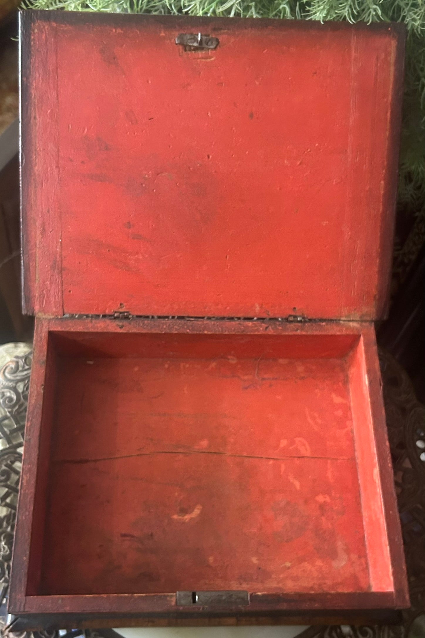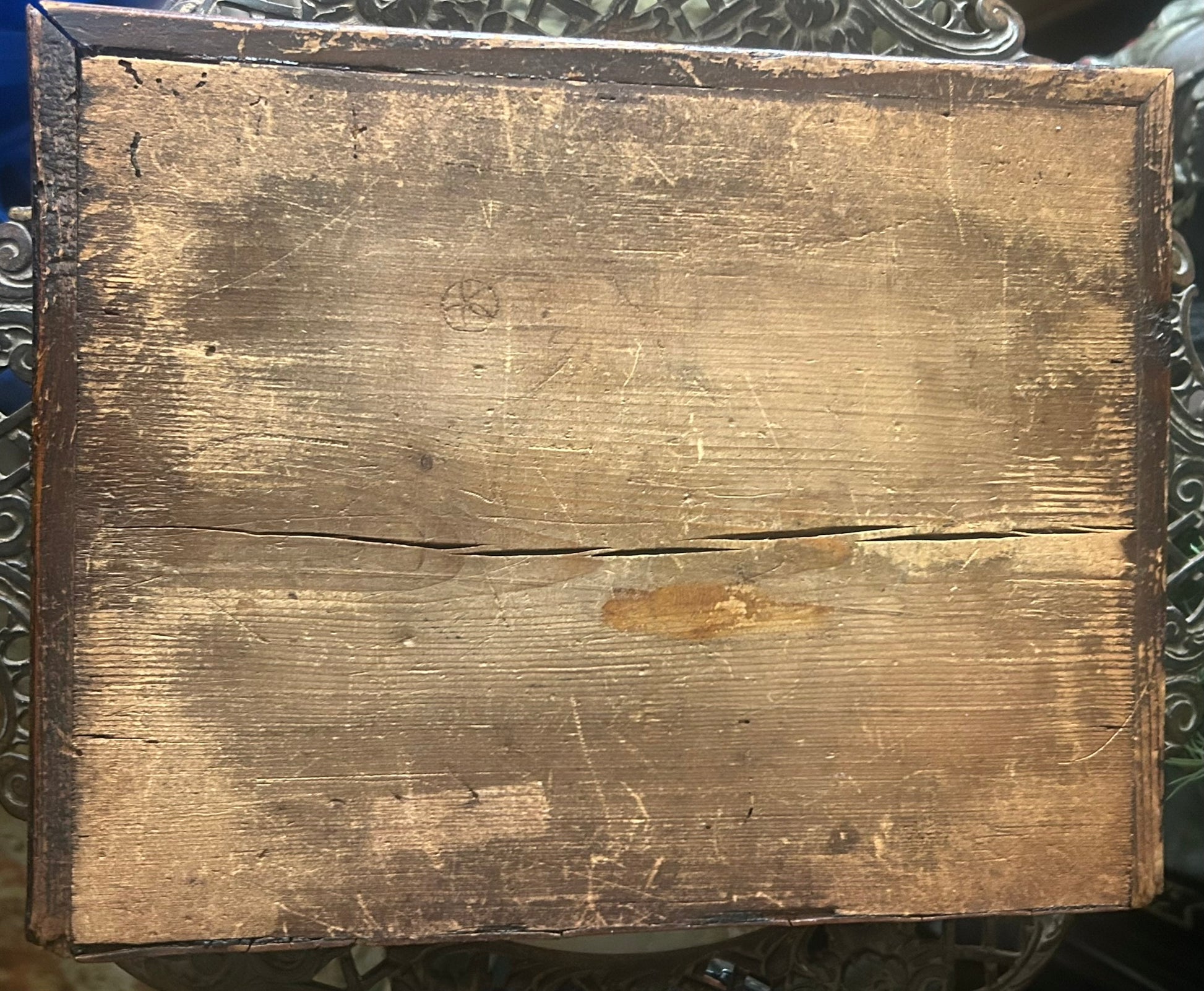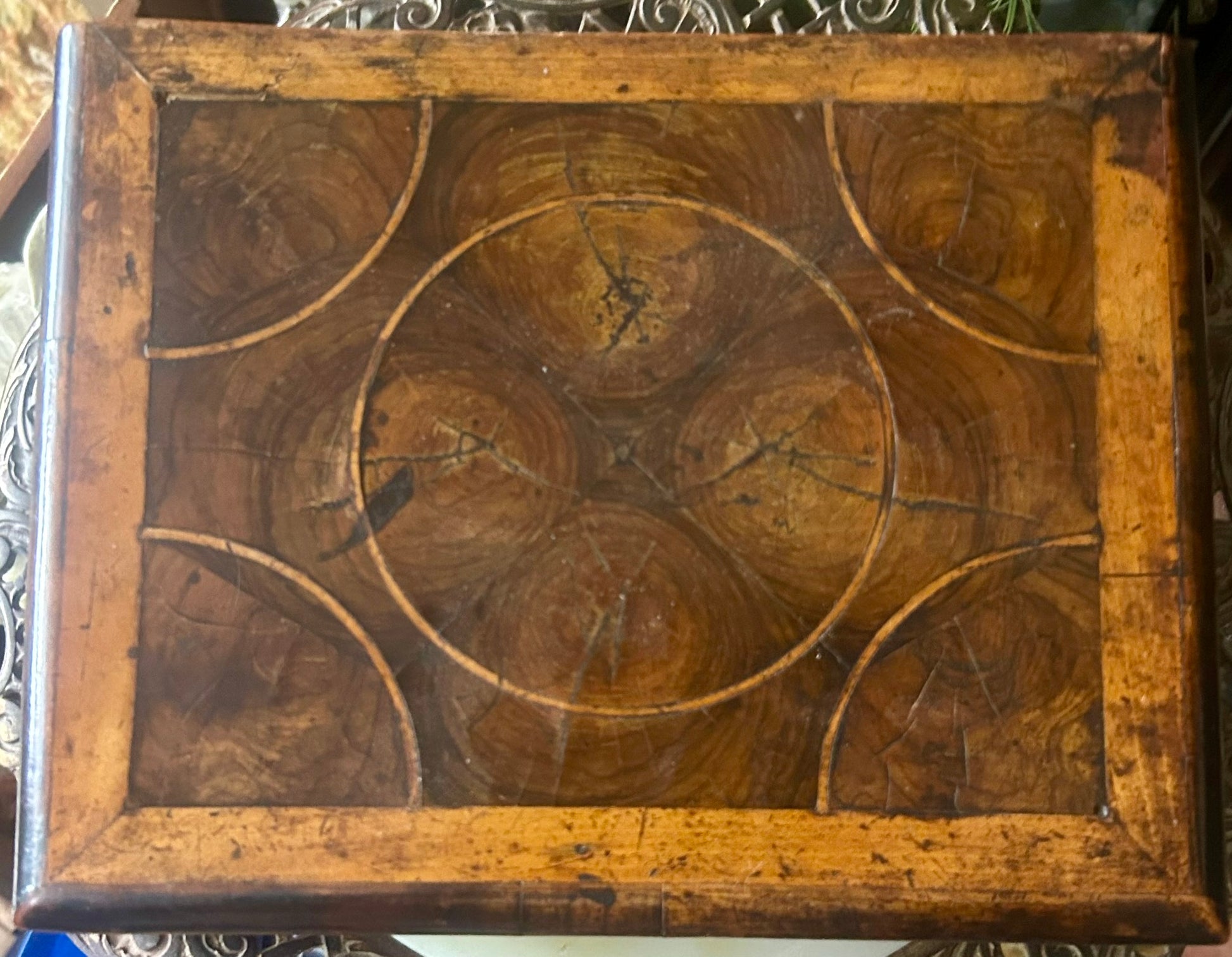 OYSTERWOOD CIRCA 1700 INLAID WOOD BOX FOR HOLDING LACE 11" WIDE X 8" DEEP X 3" HIGH. CALL OR TEXT FOR MORE INFORMATION