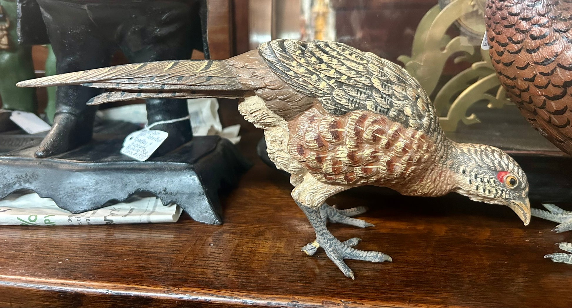 PAIR OF VIENNA BRONZE COLD PAINTED PHEASANTS, TALLEST 9". CALL, TEXT, OR E-MAIL FOR MORE INFORMATION