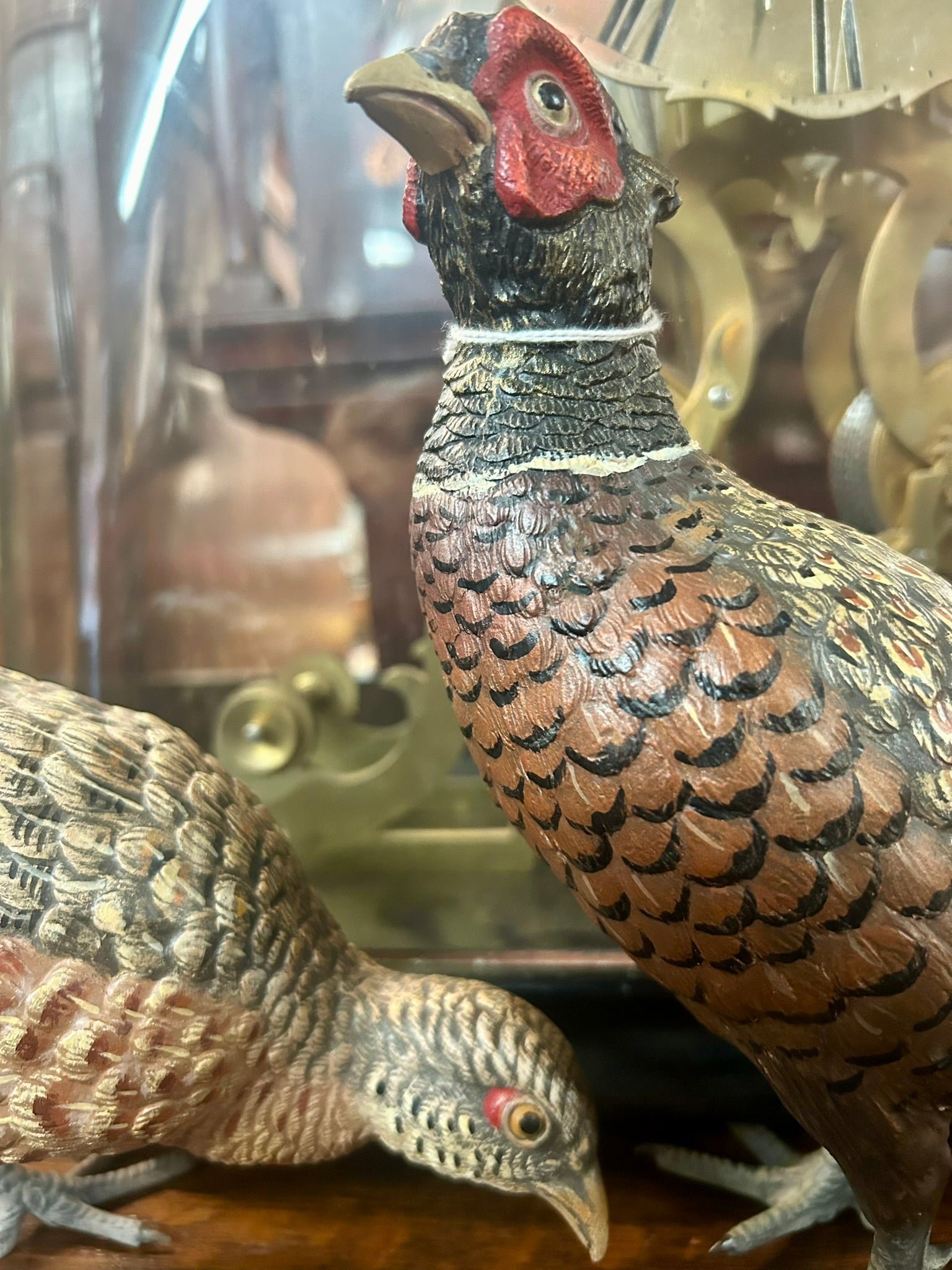 PAIR OF VIENNA BRONZE COLD PAINTED PHEASANTS