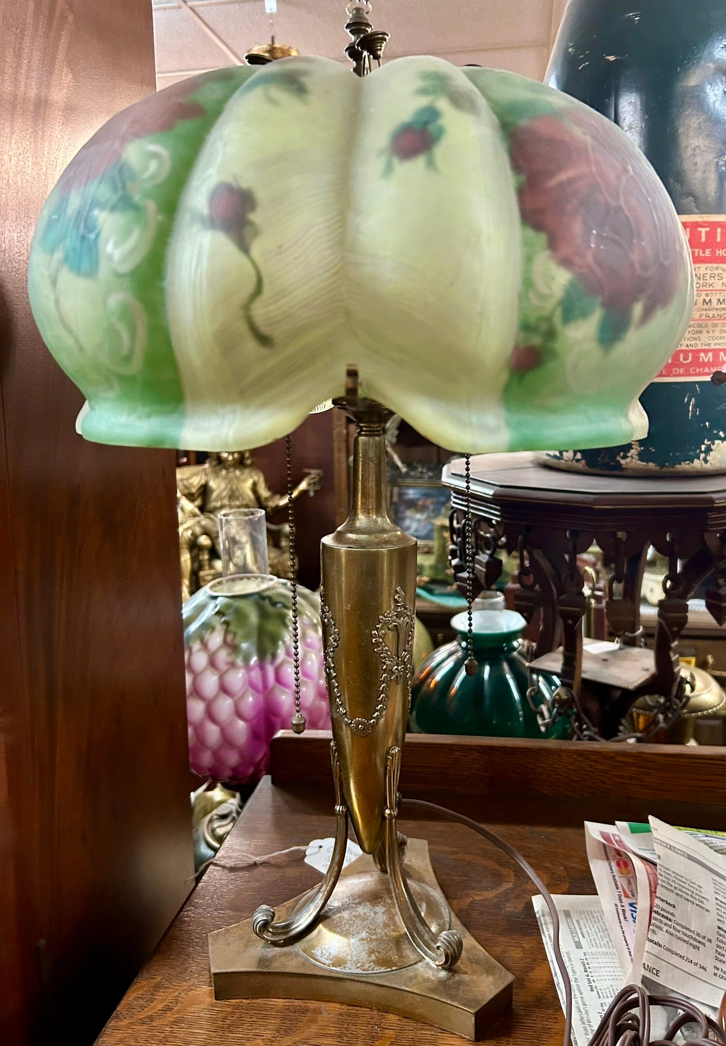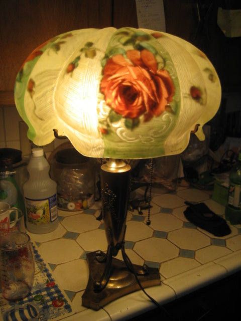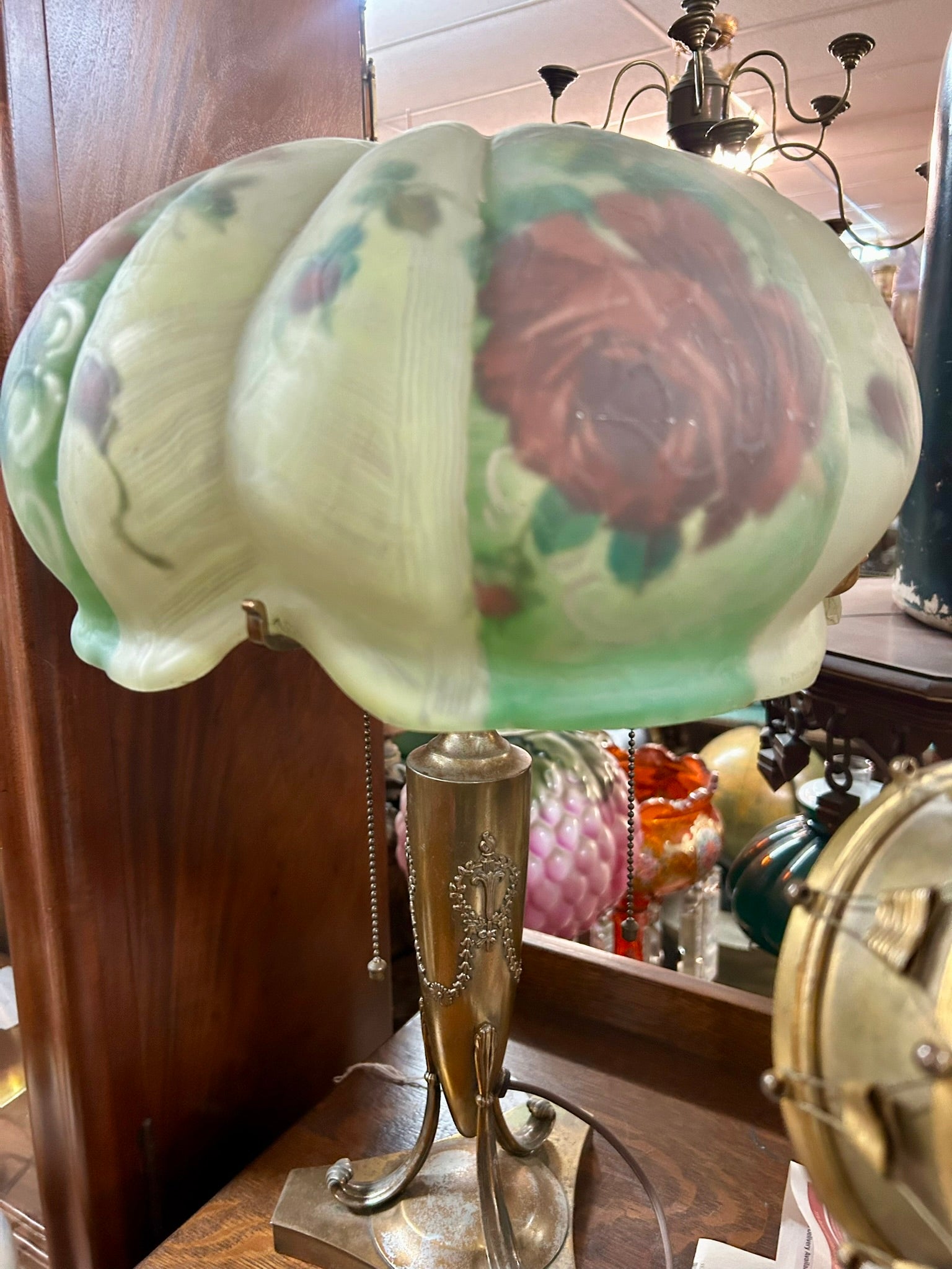 PAIRPOINT BLOWN OUT PUFFY REVERSE PAINTED FLORAL LAMP 20" TALL. CALL, TEXT, ORE-MAIL FOR MORE INFORMATION