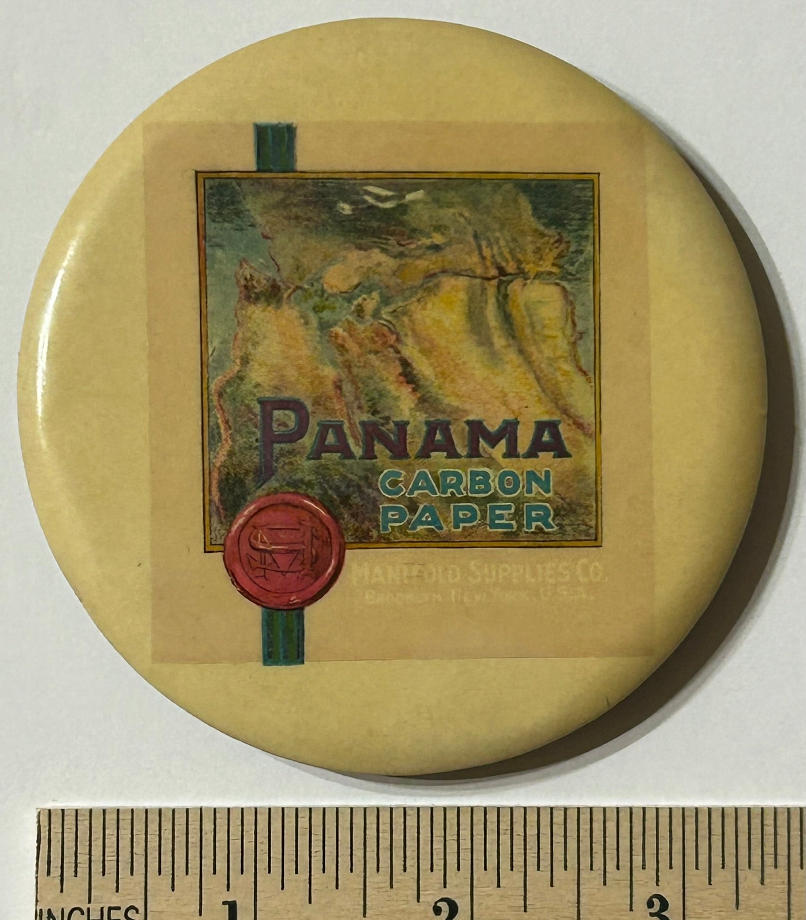 PANAMA CARBON PAPER ADVERTISING MIRROR 3 1/2" DIAMETER. CALL OR TEXT FOR MORE INFORMATION