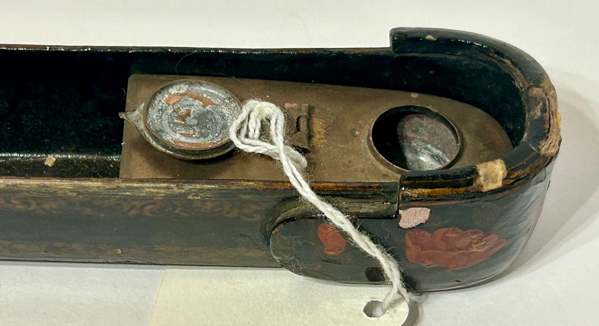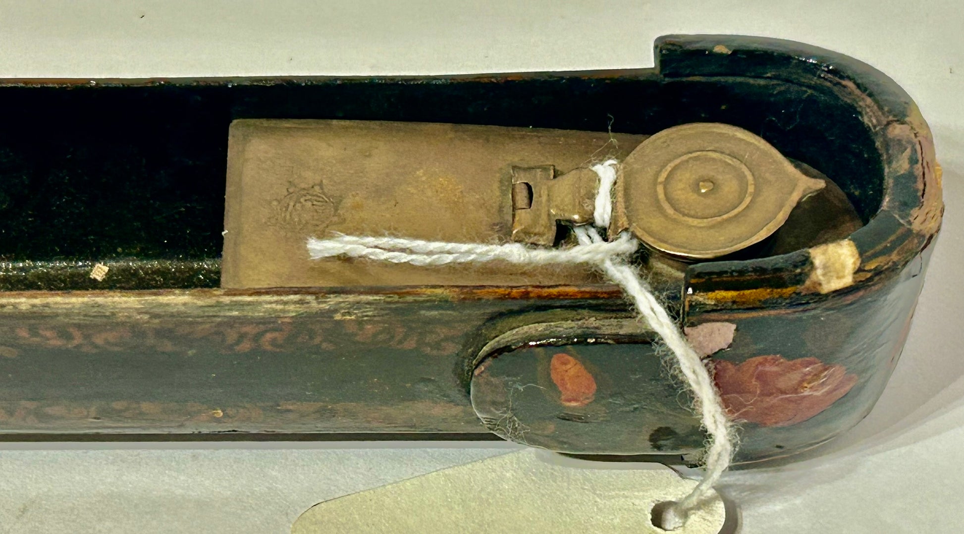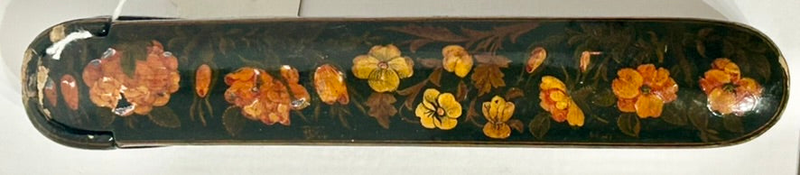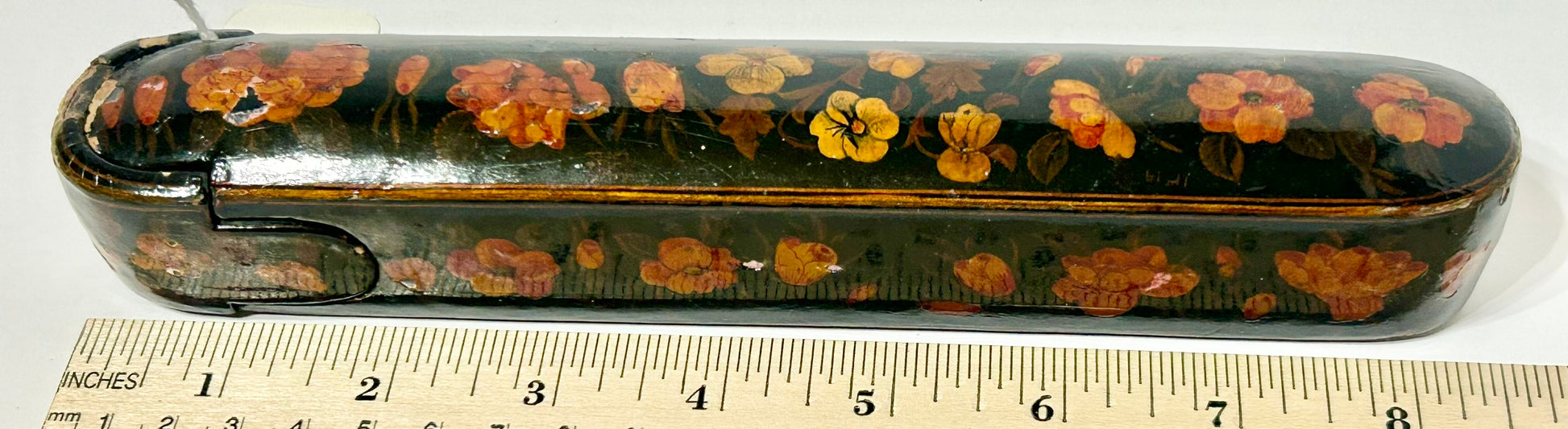 PERSIAN DECORATED SCRIBES PEN AND INK INK WELL PAPER MACHE CASE 9" LONG. CALL OR TEXT FOR MORE INFORMATION