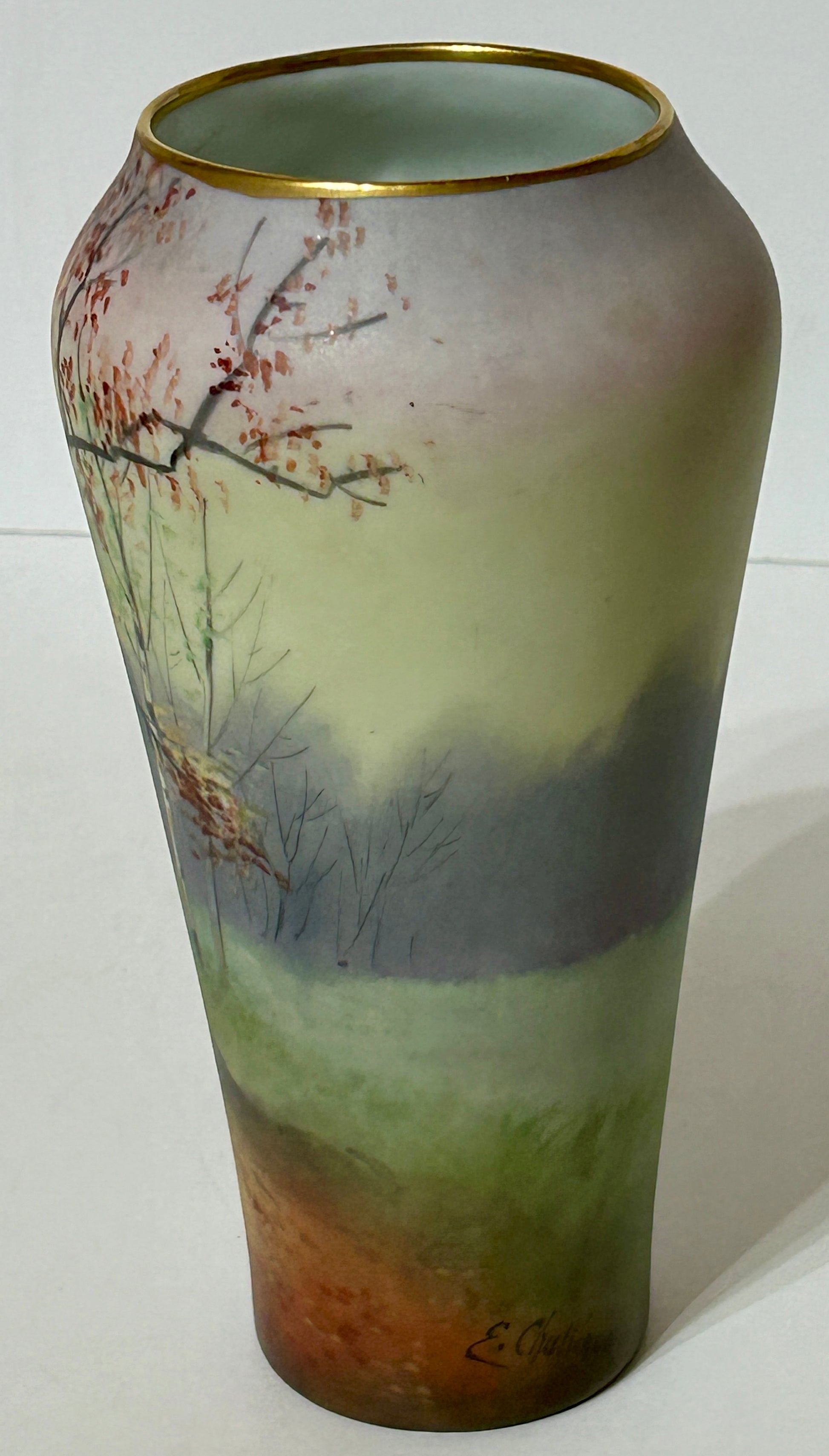 ANTIQUE PICKARD VELUM FINISH HANDPAINTED LANDSCAPE VASE SIGNED CHALLINOR 9 1/2" TALL X 5" DIAMETER. CALL OR TEXT TRIPLE A ANTIQUES FOR A SHIPPING COST BEFORE YOU PURCHASE THIS ITEM