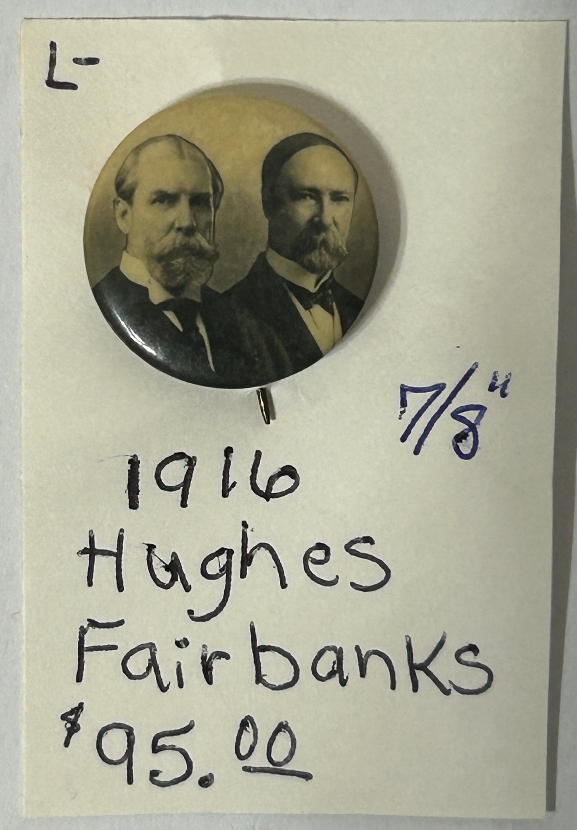POLITICAL PIN HUGHES FAIRBANKS JUGATE