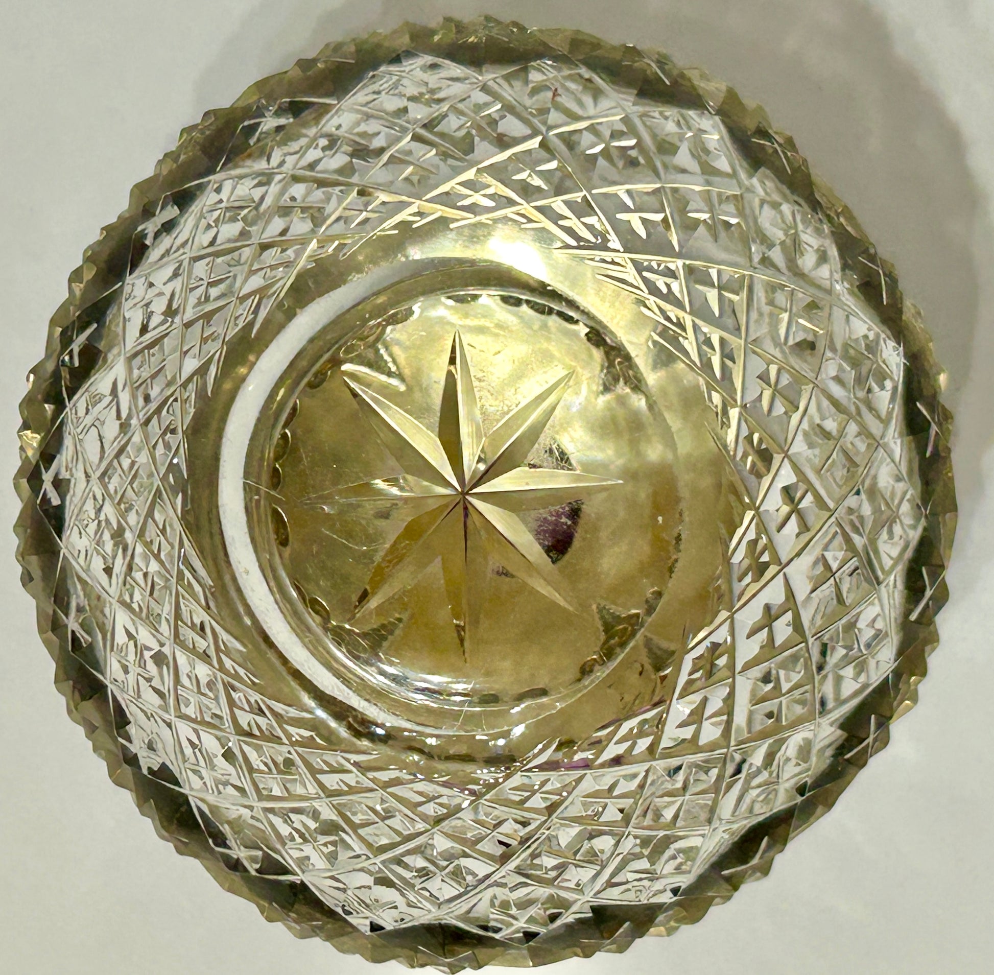 ANTIQUE STERLING AND CUT GLASS POWDER JAR WITH AMETHYST STONE IN LID 4" DIA. SHIPPING IS EXTRA SO CALL OR TEXT FOR COST TO YOUR ADDRESS