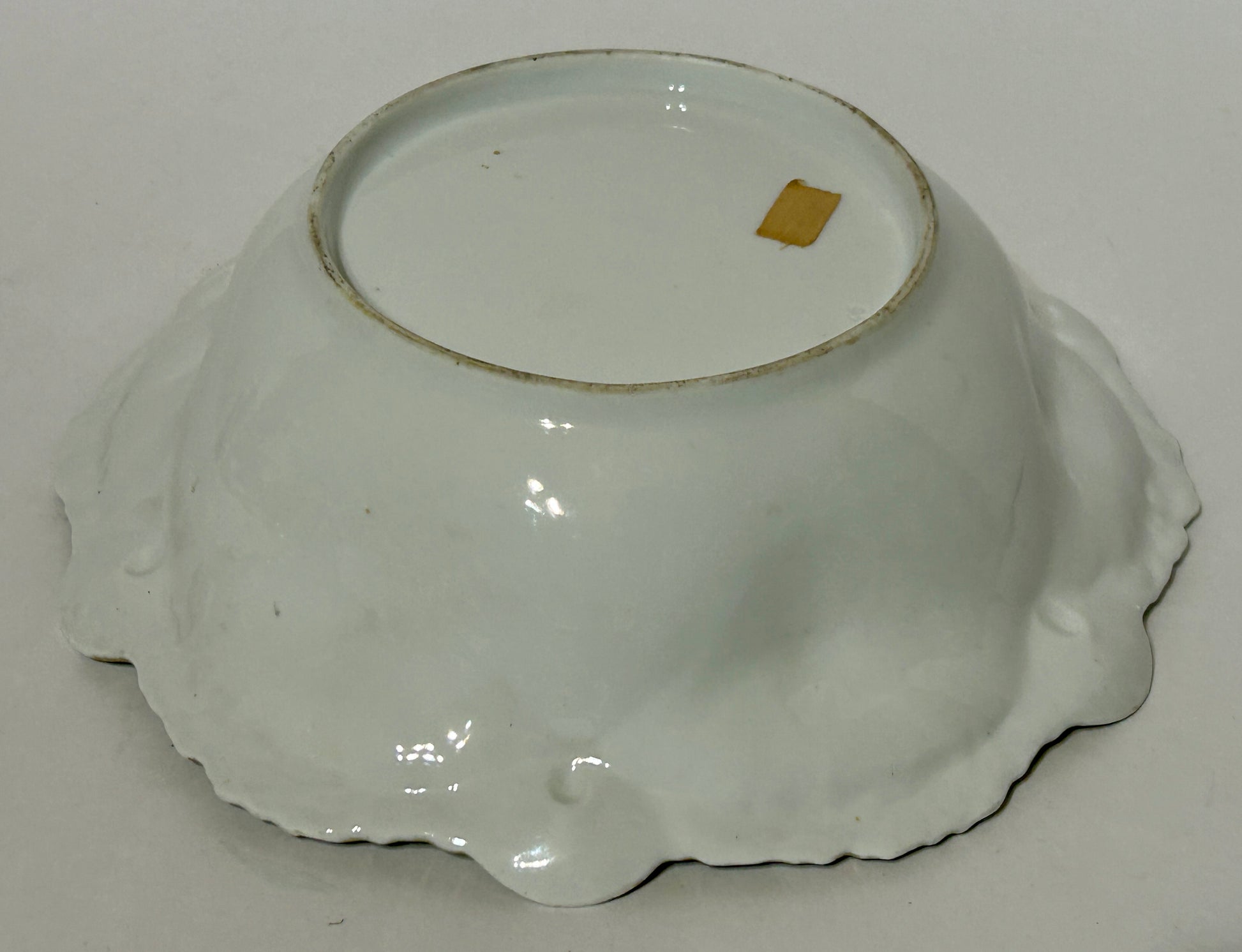 ANTIQUE TURKEY IN LANDSCAPE DESIGN DECORATED ANTIQUE PRUSSIA BOWL UNMARKED 10 1/4" DIAMETER X 4" TALL. SHIPPING IS EXTRA CHARGE SO CALL OR TEXT TO FIND OUT WHAT WE WILL HAVE TO PAY TO SHIP THIS ITEM TO YOUR ADDRESS
