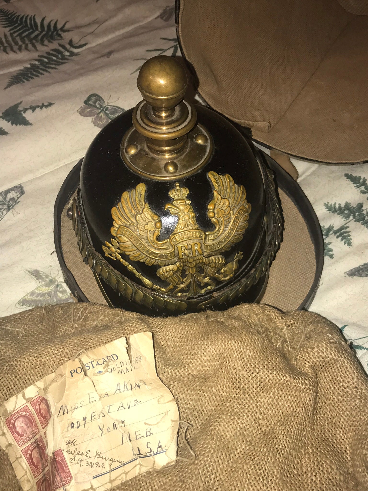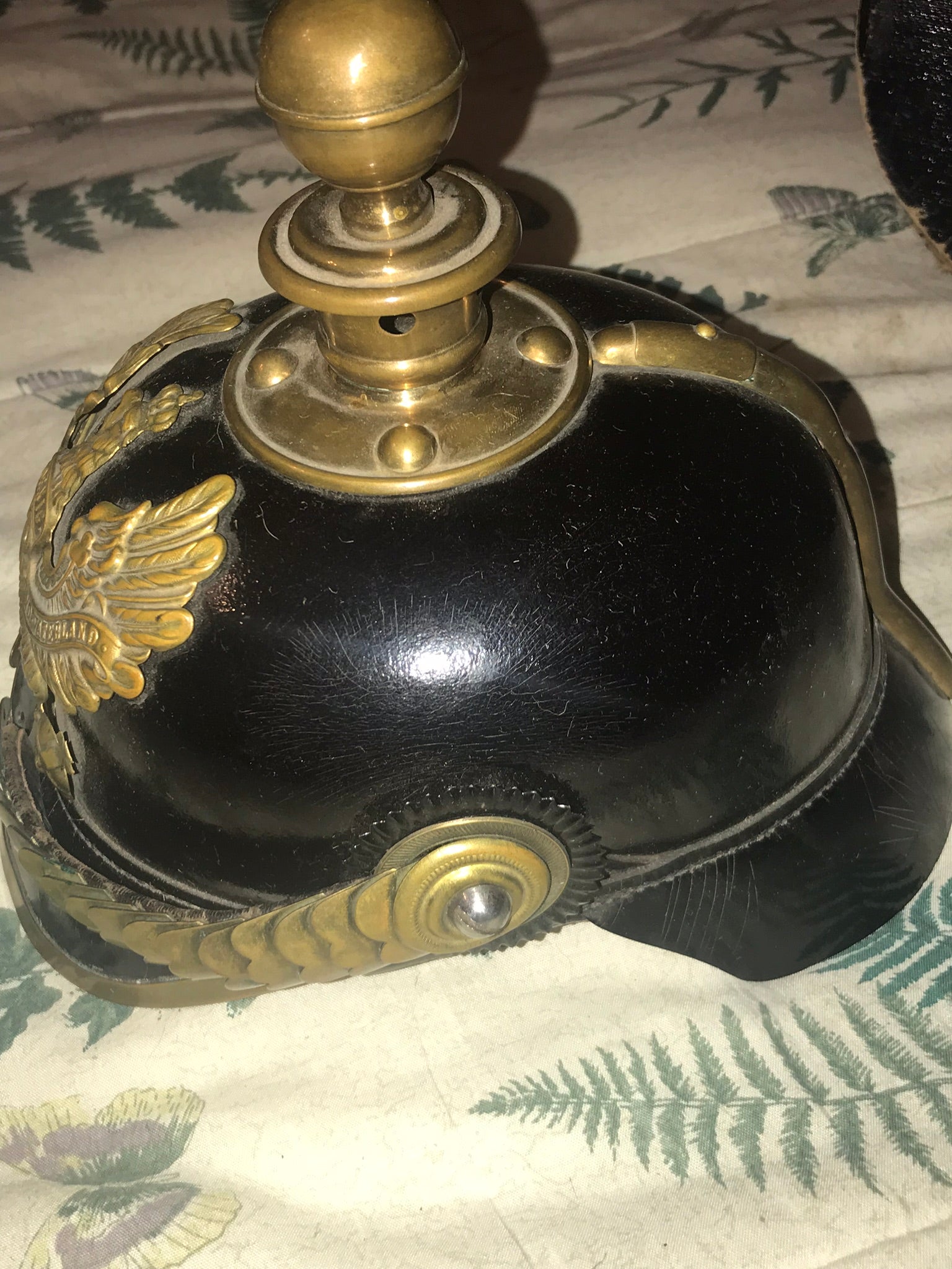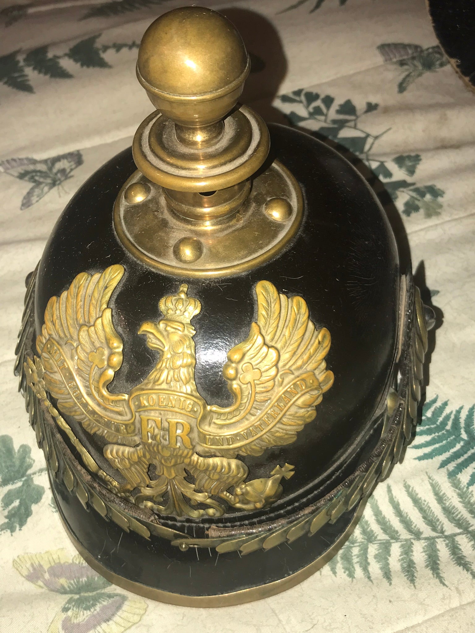 PRUSSIAN IMPERIAL GERMANY FIELD ARTILLERY KUGELHELM HELMET COMPLETE WITH CASE. CALL, TEXT, OR E-MAIL FOR MORE INFORMATION