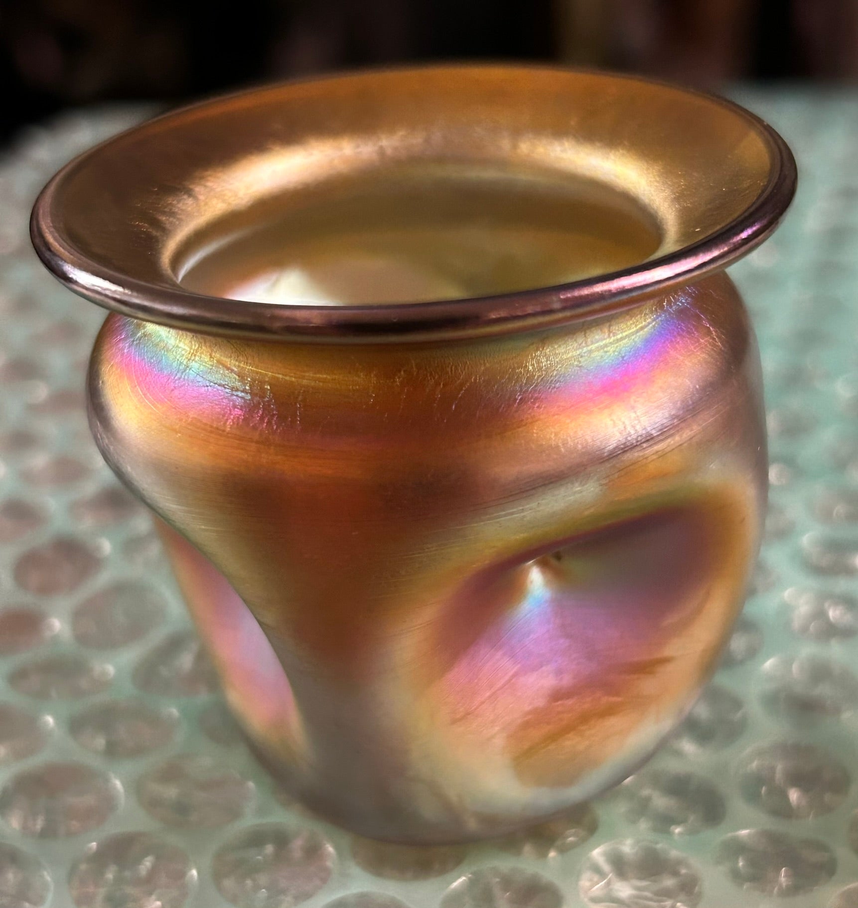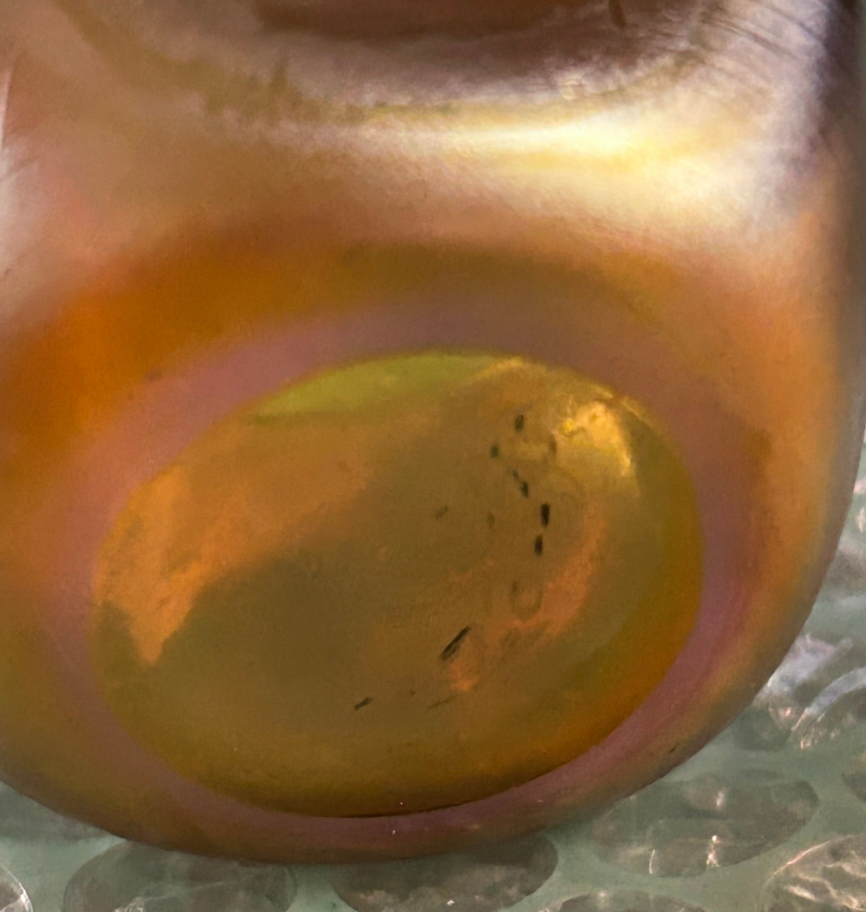 QUEZAL GLASS GOLD IRRIDESCENT TOOTHPICK 2 1/4" TALL. CALL OR TEXT FOR MORE INFORMATION