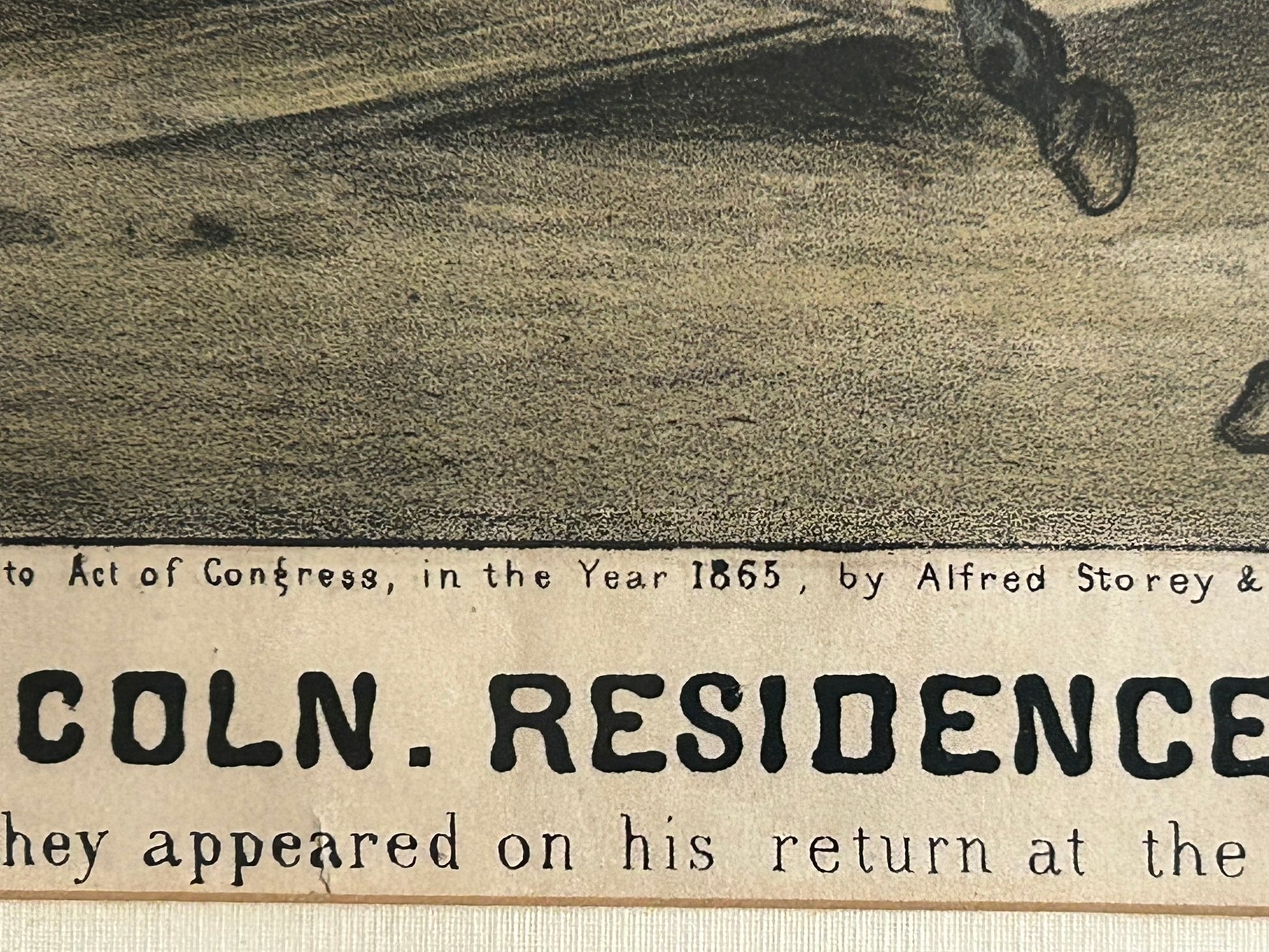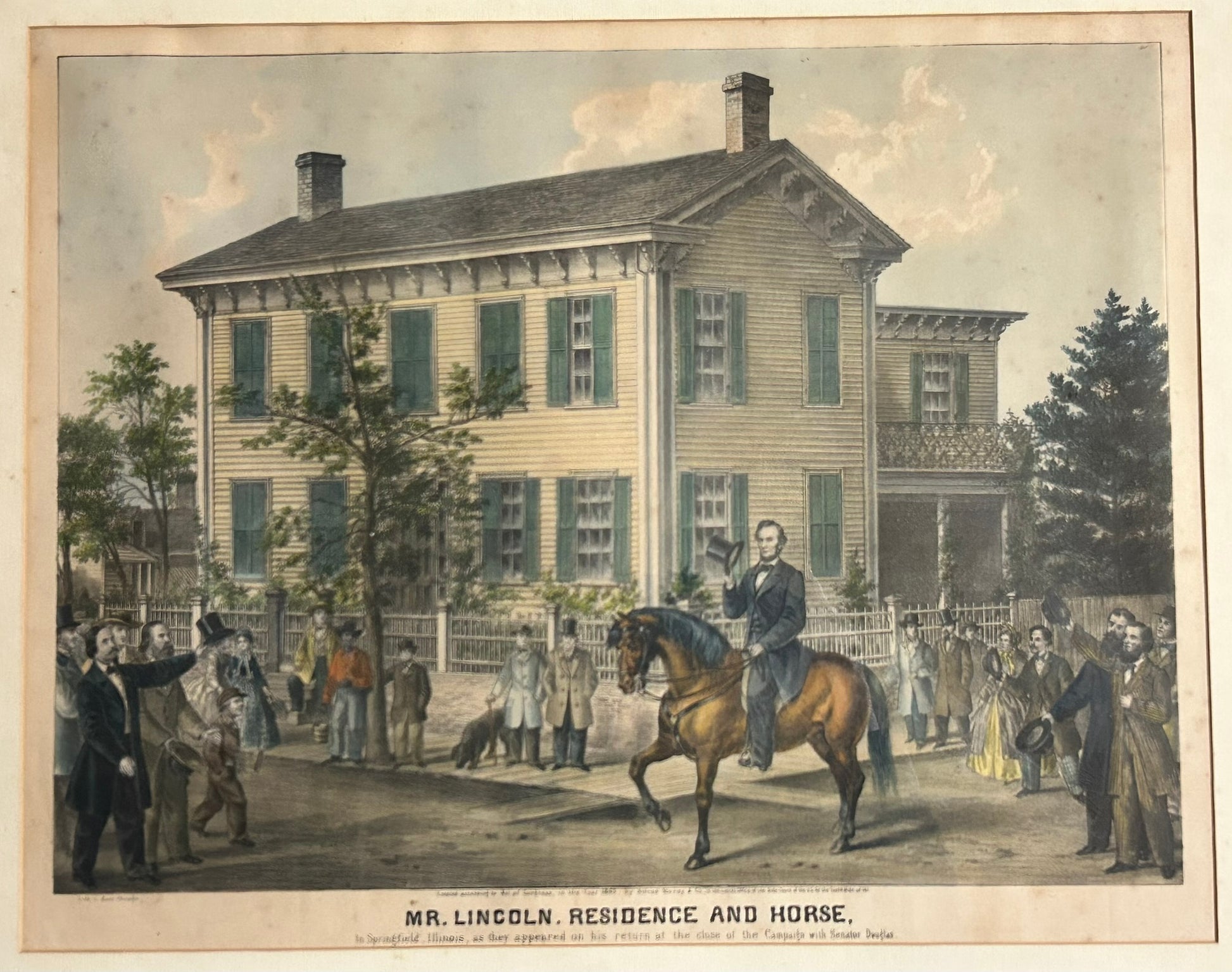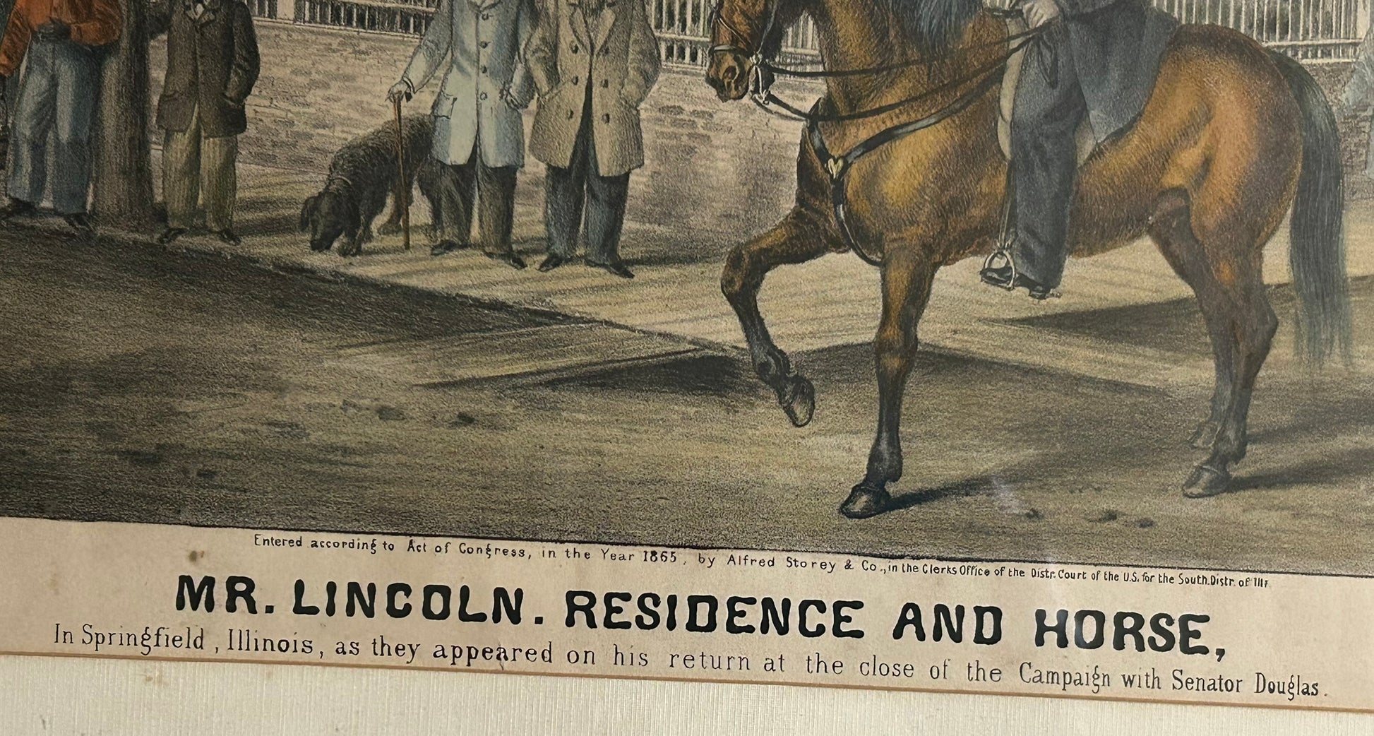 RARE ABRAHAM LINCOLN RESIDENCE AND HORSE 1865 IN SPRINGFIELD TINTED PRINT