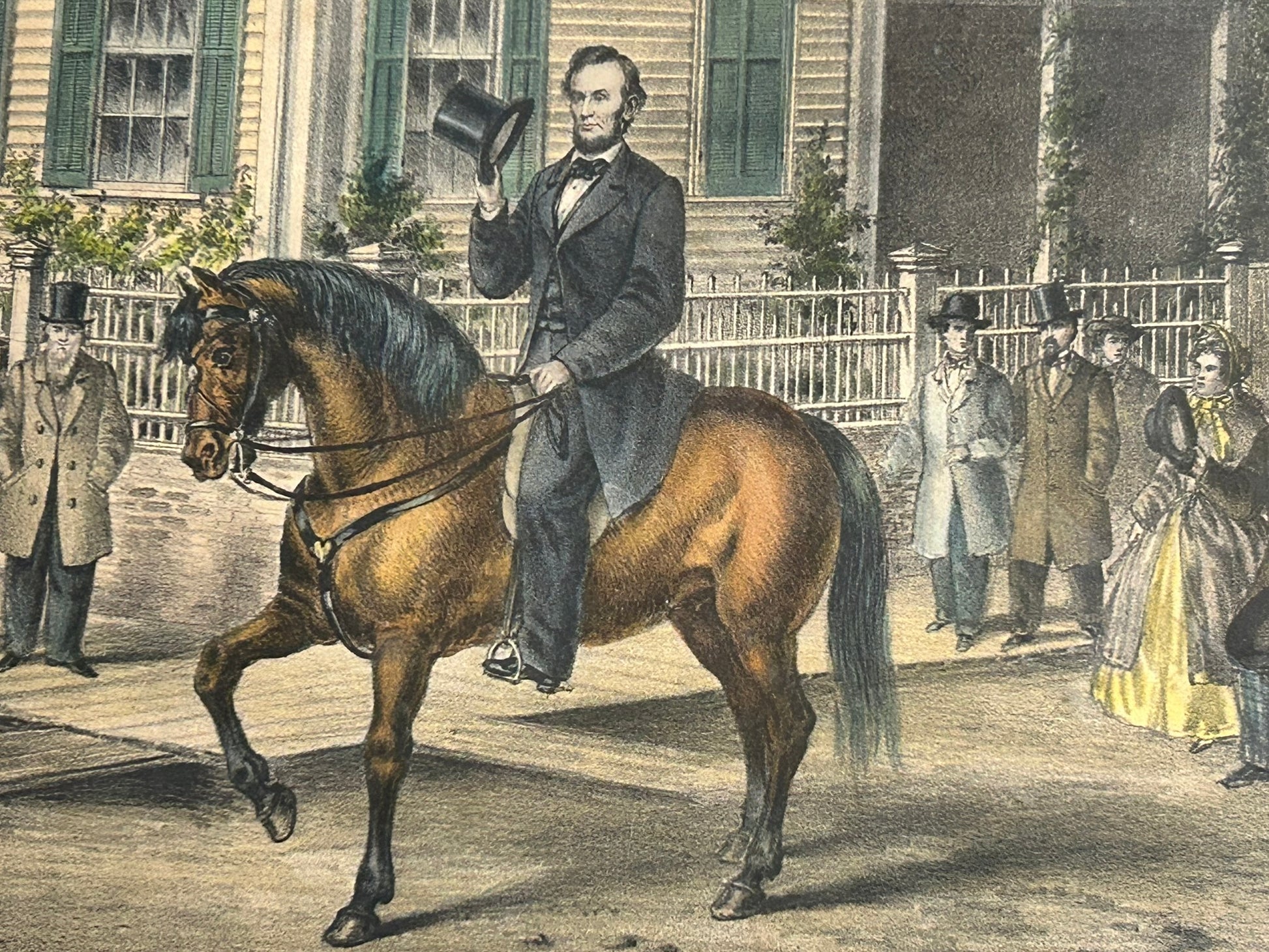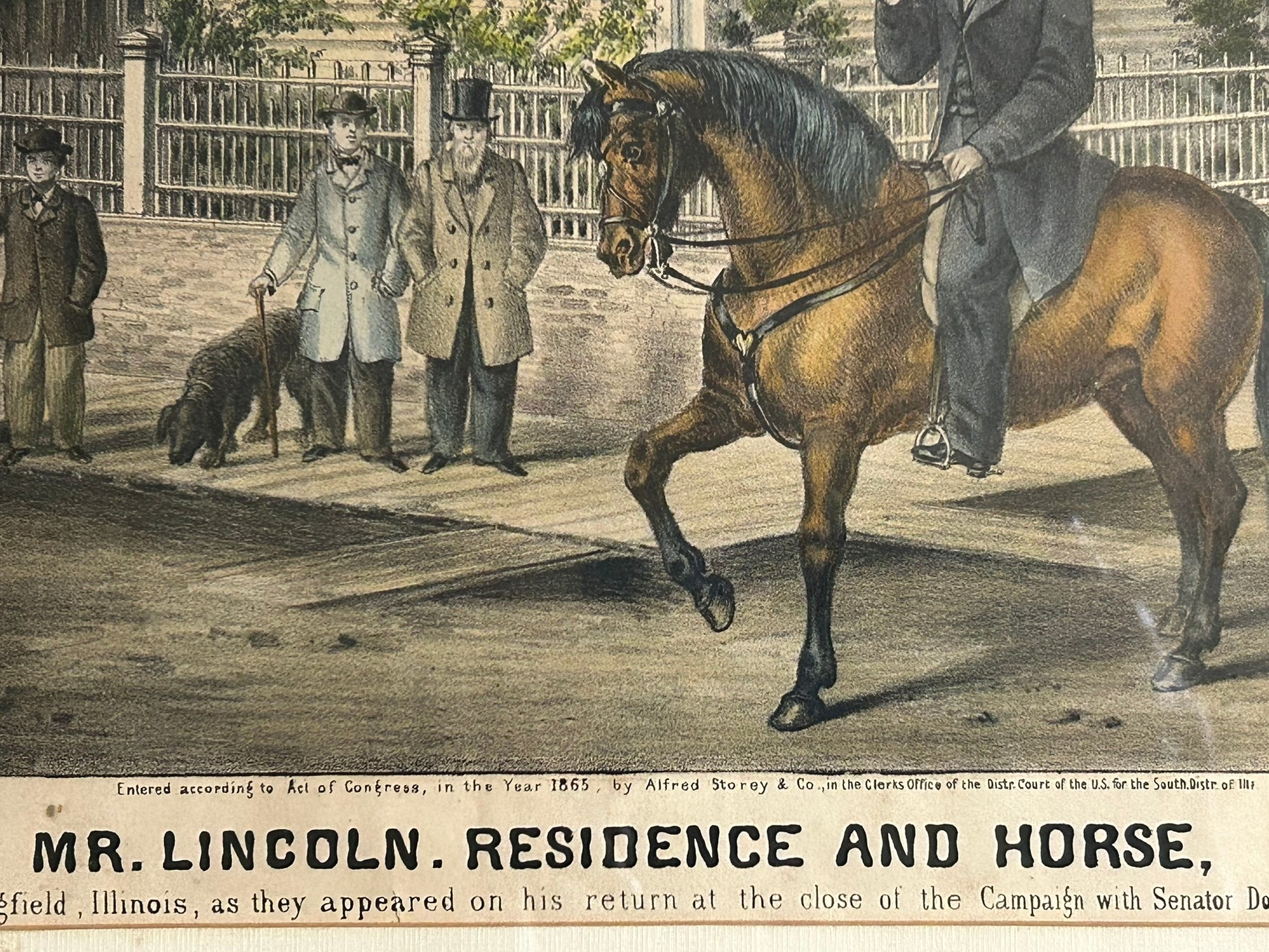 MR. LINCOLN RESIDENCE AND HORSE 1865 IN SPRINGFIELD RARE TINTED PRINT 17" X 22" IMAGE ONLY AND 25 1/2" X 30" WITH FRAME. CALL OR TEXT FOR MORE INFORMATION