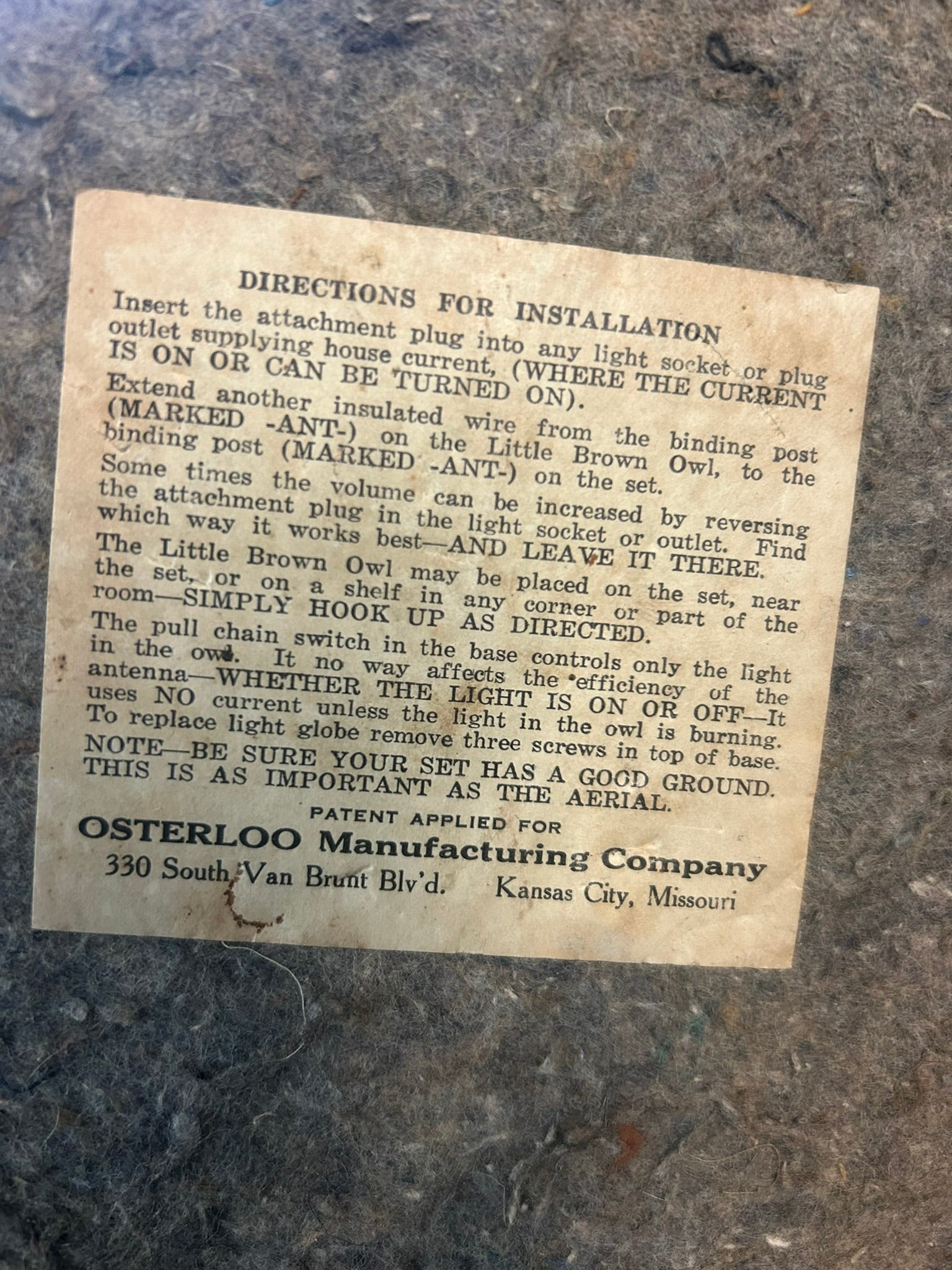 RARE FIGURAL OWL RADIO LAMP AND ANTENNA