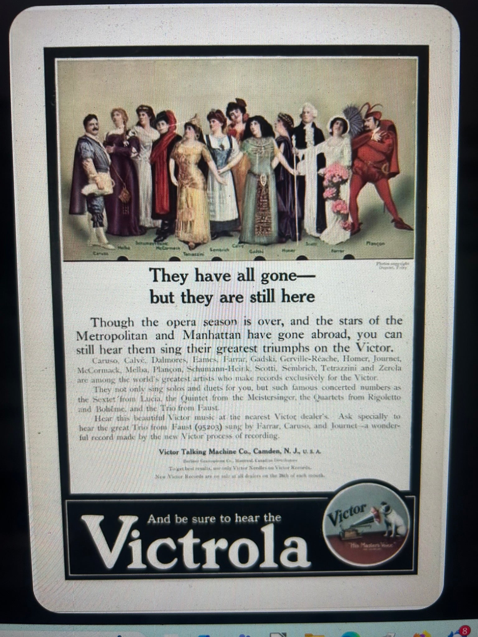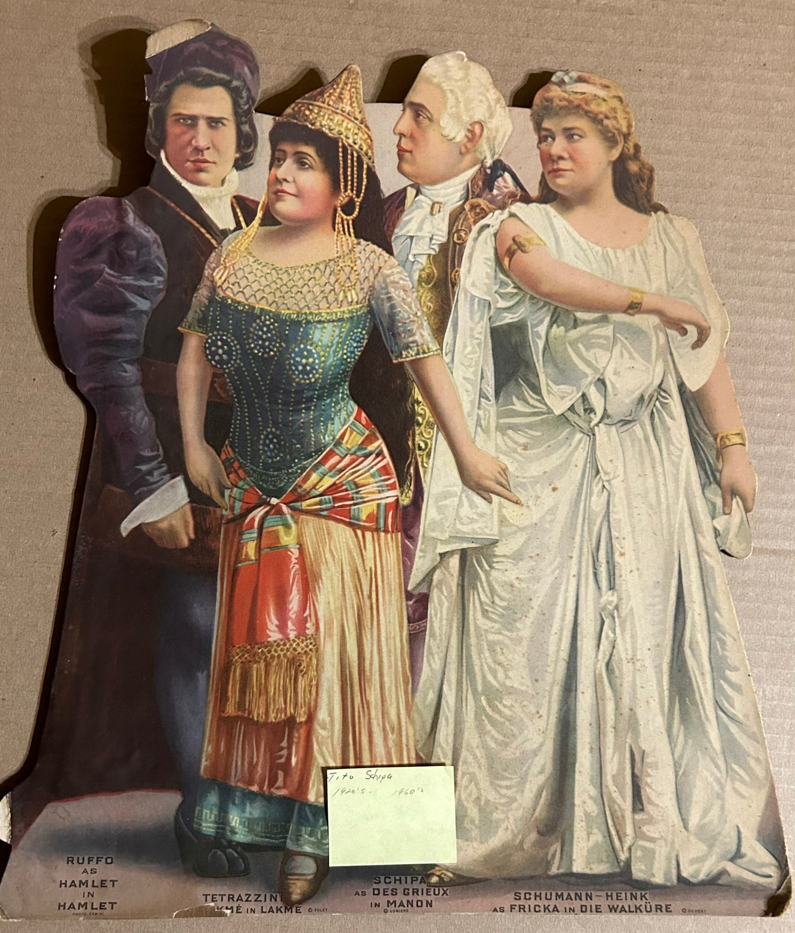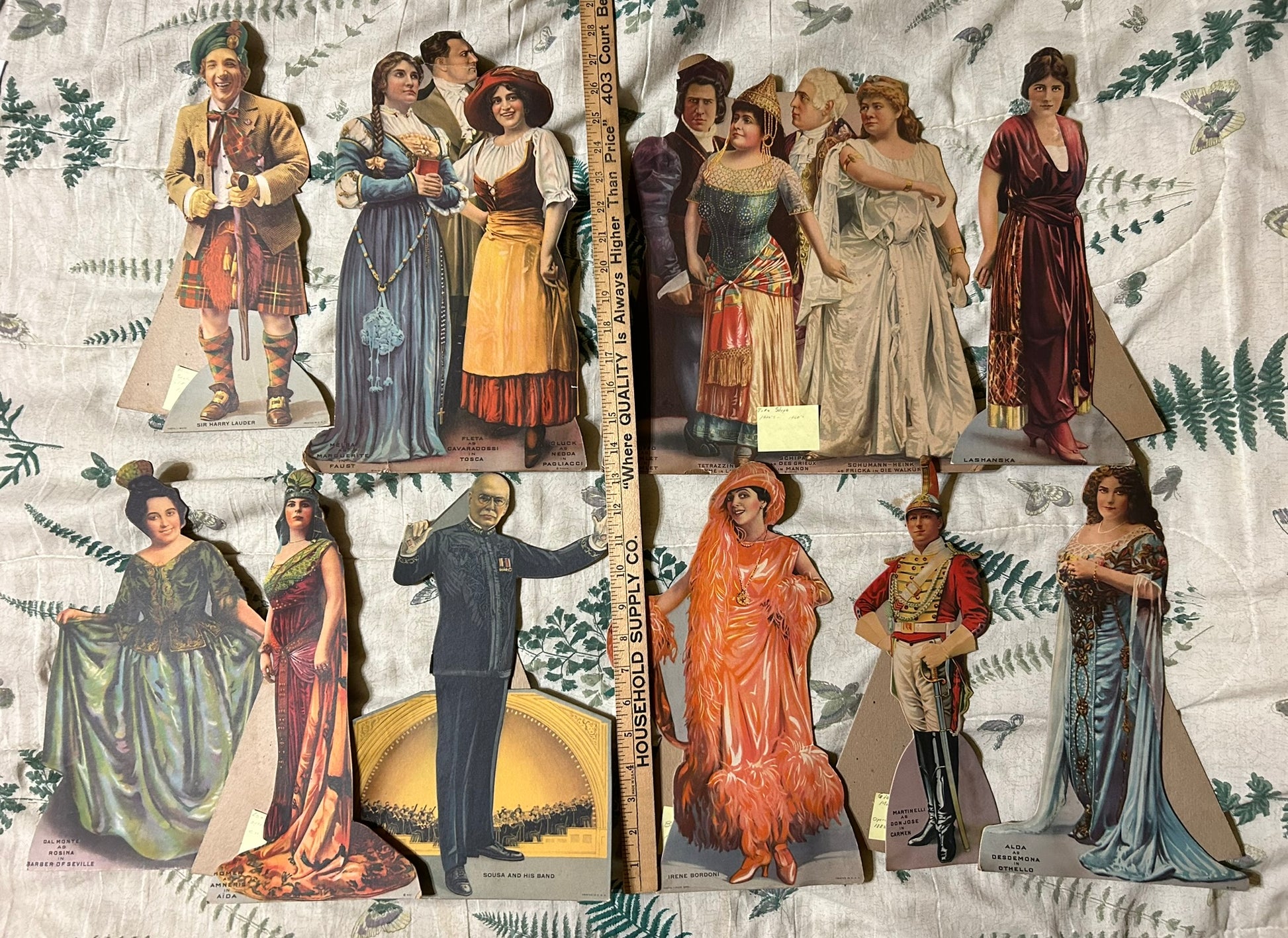 RCA VICTOR EARLY 1900'S ADVERTISING CARDBOARD OPERA RECORDING STARS STAND UP DISPLAYS, TEN THAT AVERAGE 13" TO 14" TALL. SOLD IN A GROUP. CALL OR TEXT FOR MORE INFORMATION