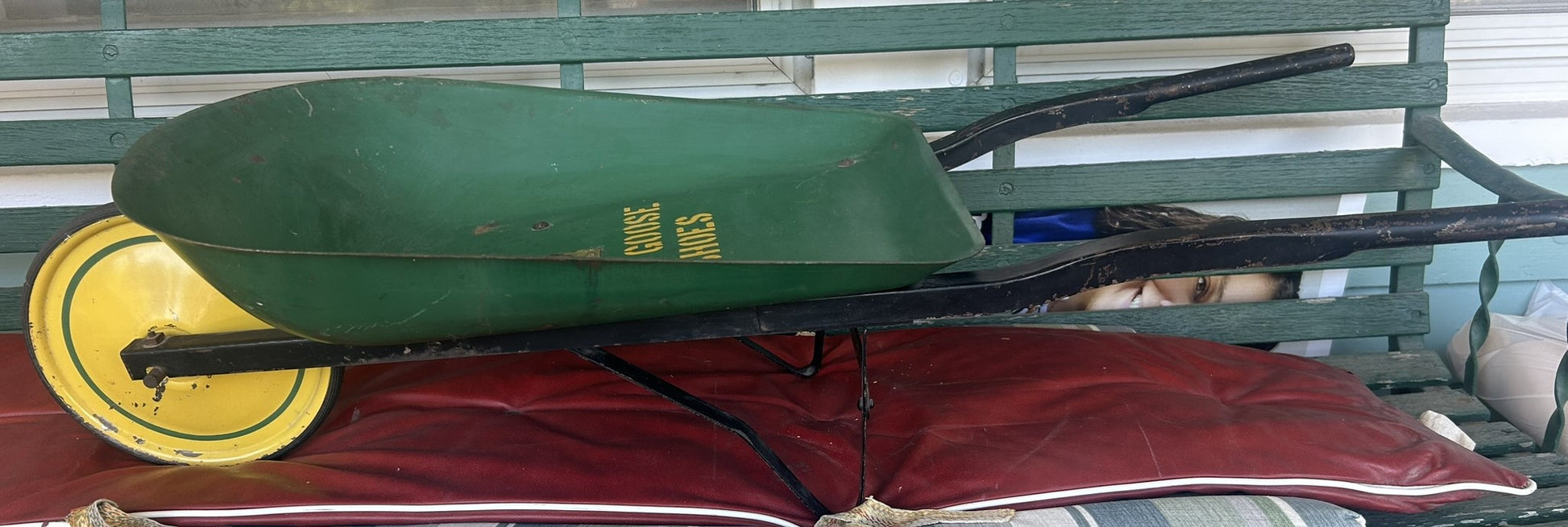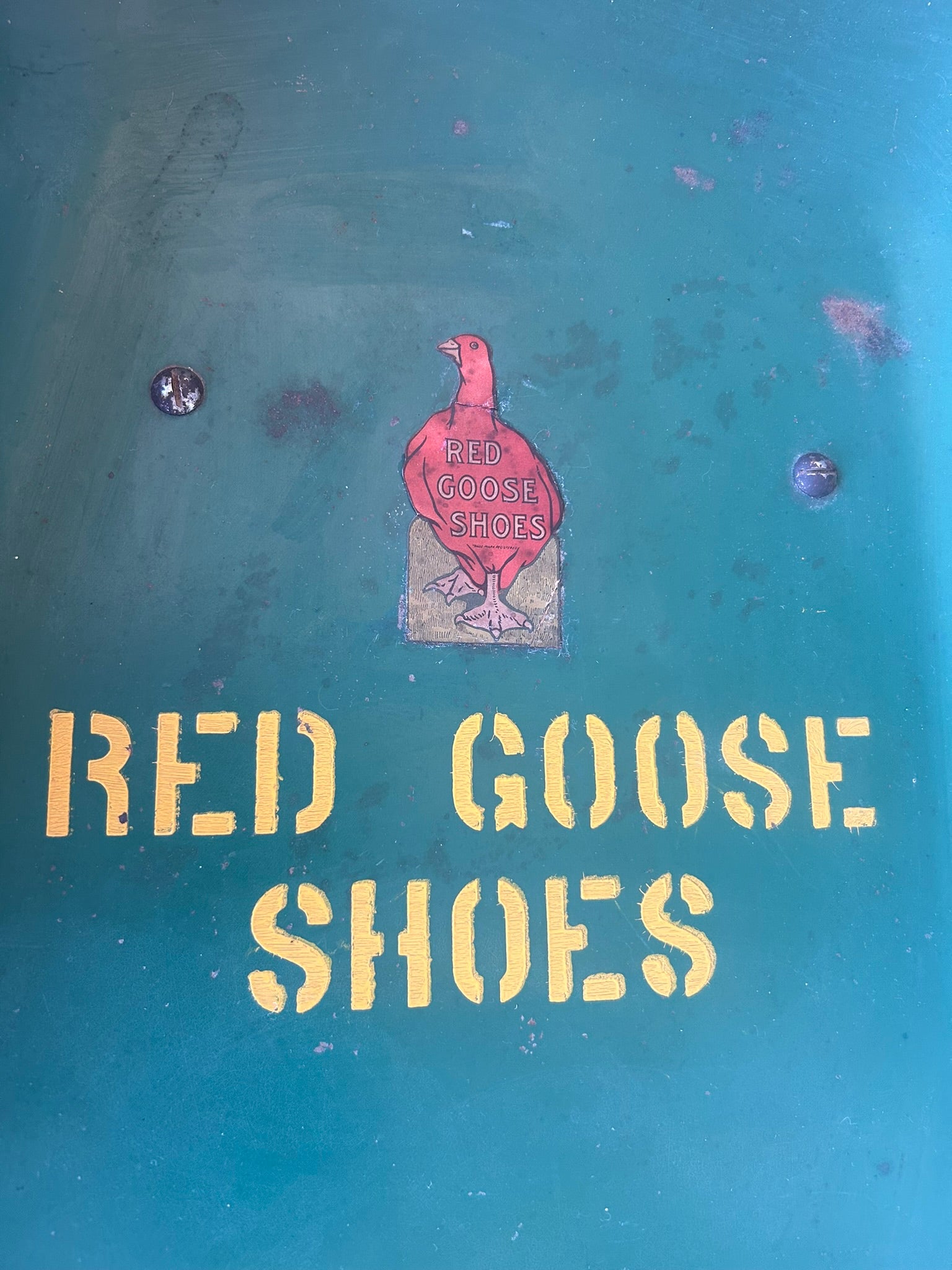 RED GOOSE SHOES ANTIQUE ADVERTISING CHILD'S WHEELBARROW 38" LONG. CALL OR TEXT FOR MORE INFORMATION