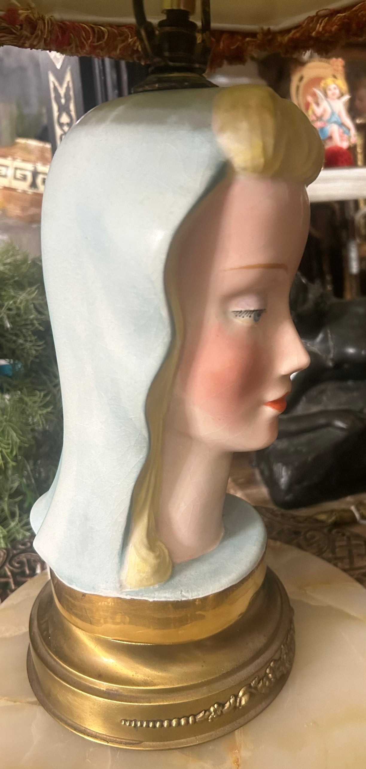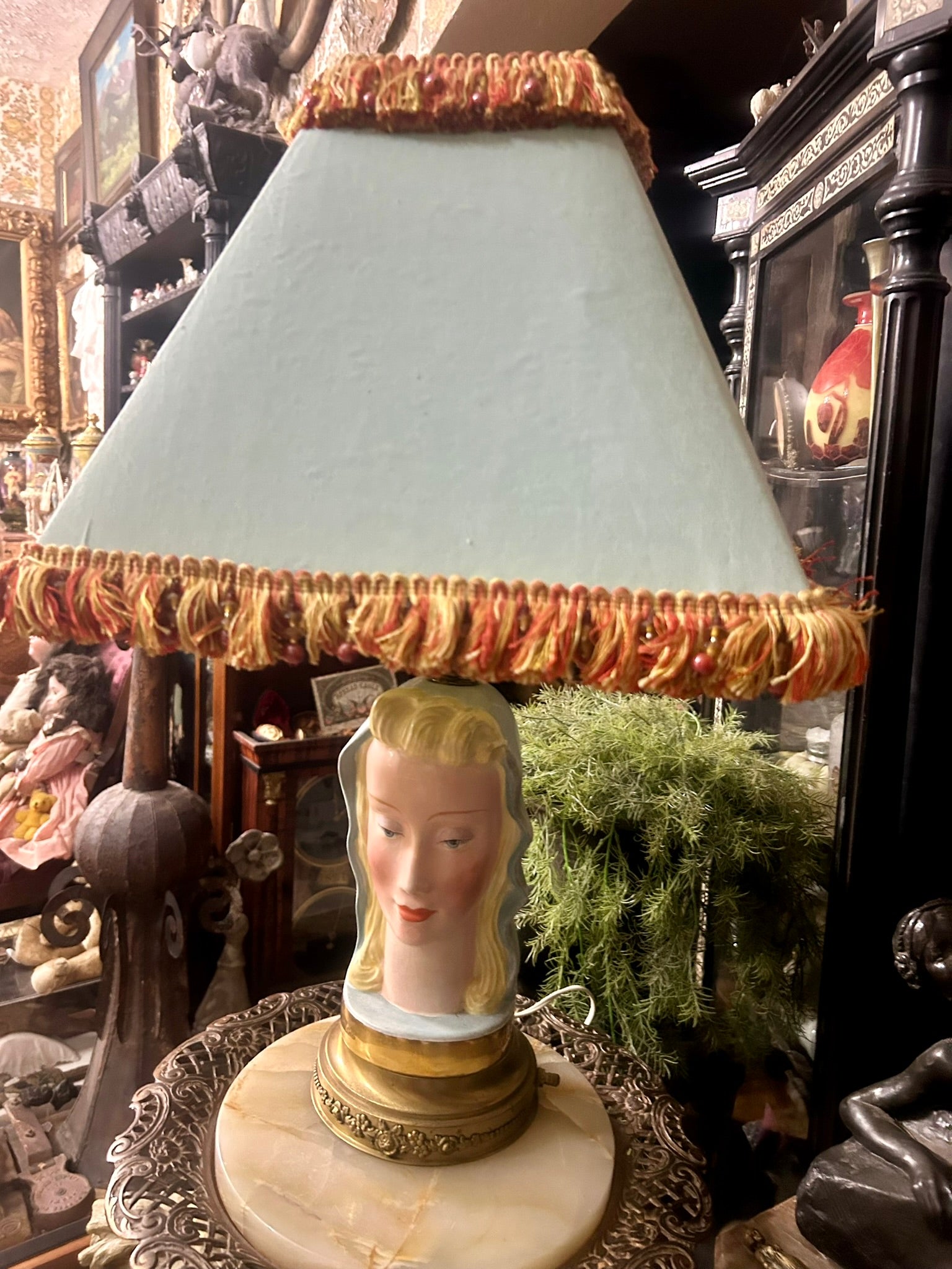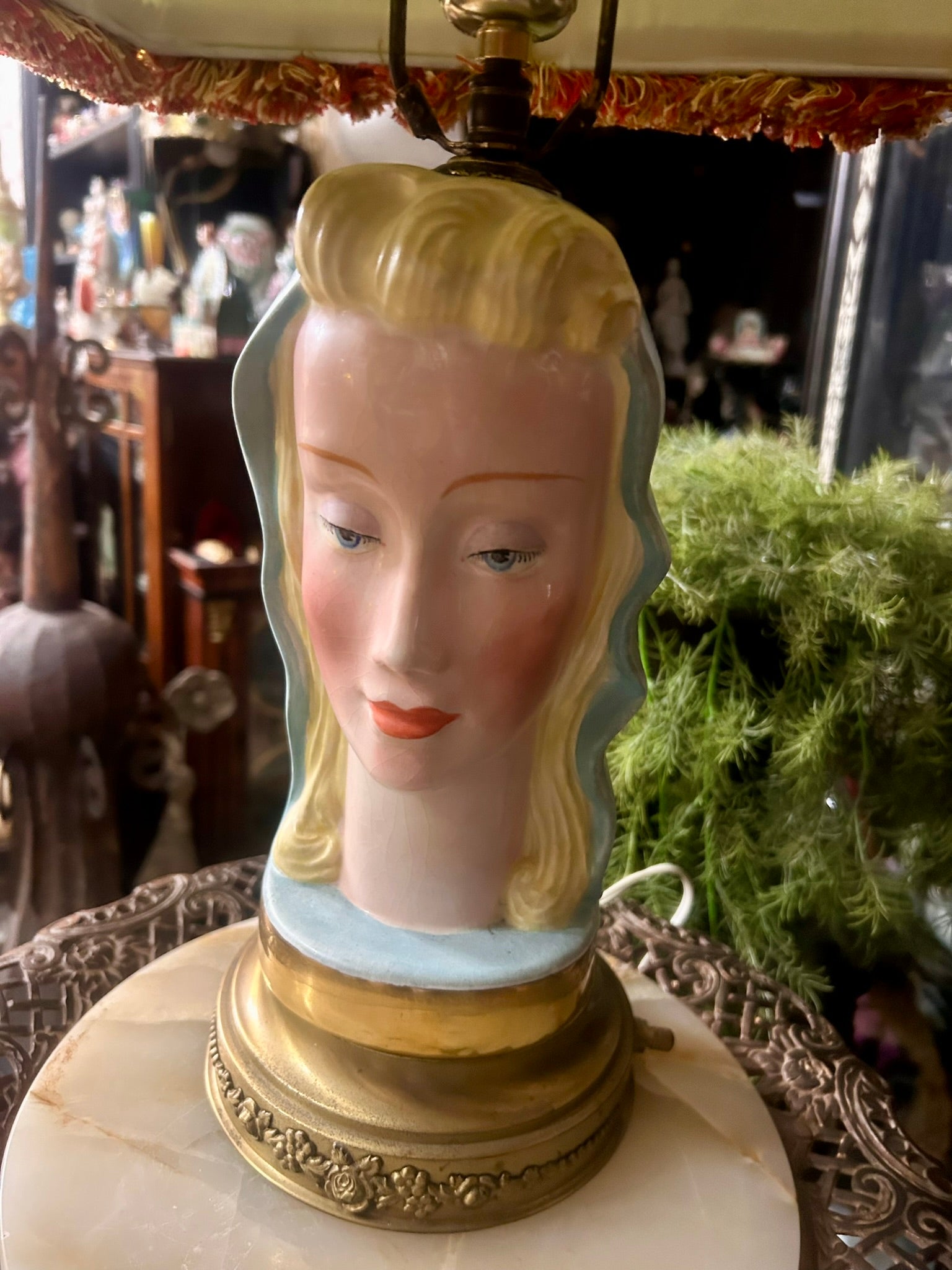 RETRO FIGURAL CERAMIC FEMALE HEAD LAMP