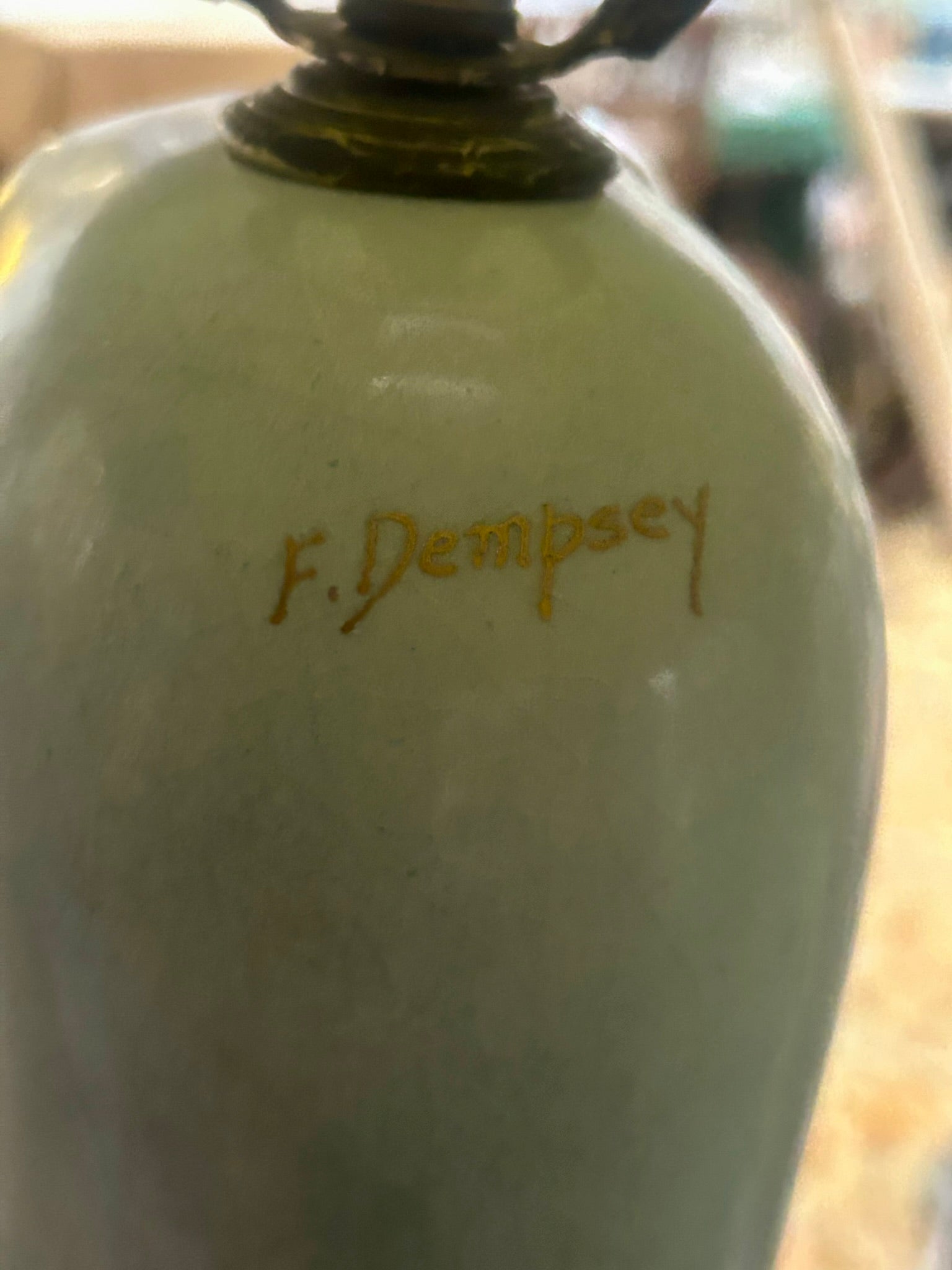 RETRO FIGURAL CERAMIC FEMALE HEAD LAMP SIGNED ON BACK F. DEMPSEY, 12" TO TOP OF HEAD AND 24" TO TOP OF LAMP. CALL OR TEXT FOR MORE INFORMATION
