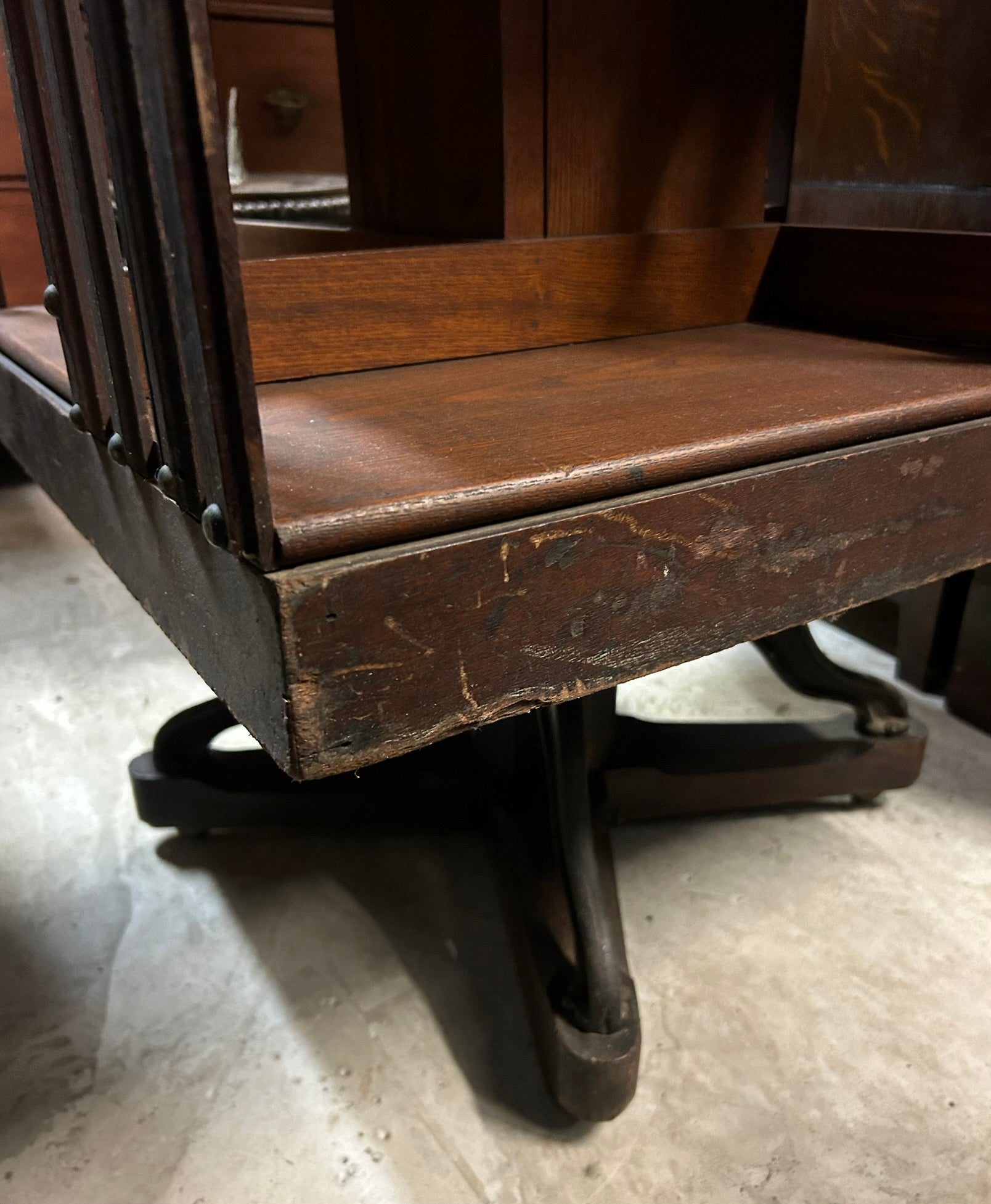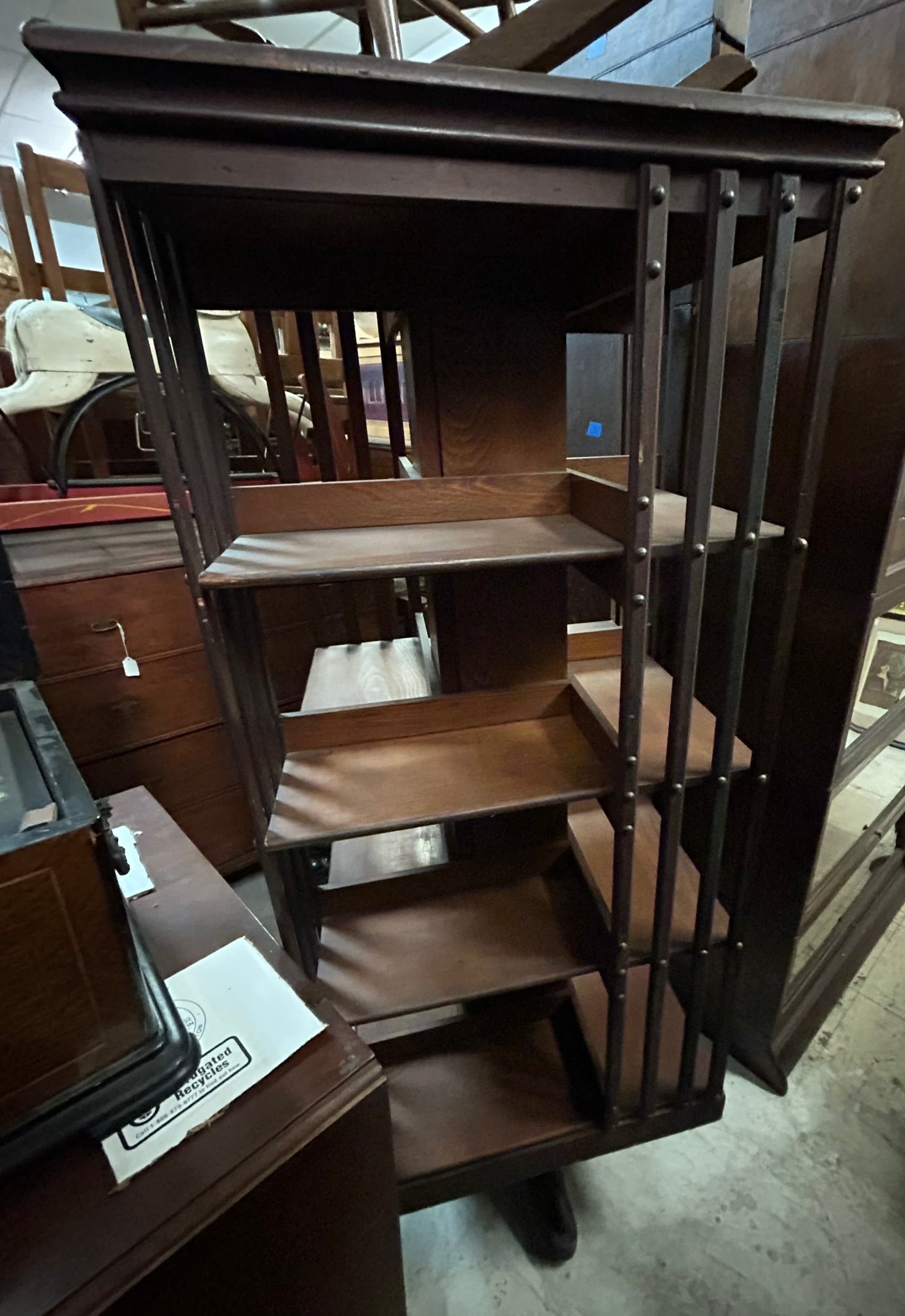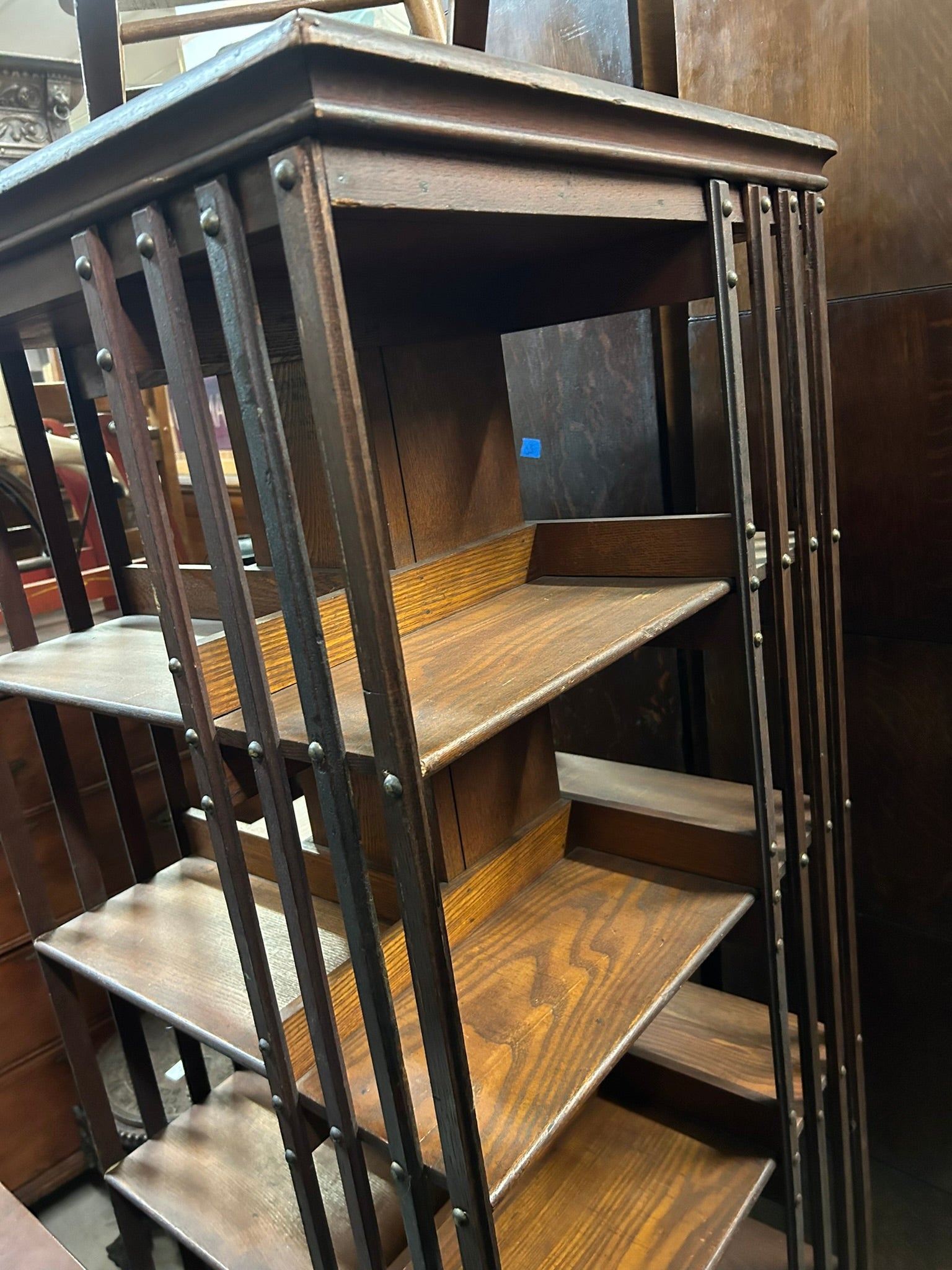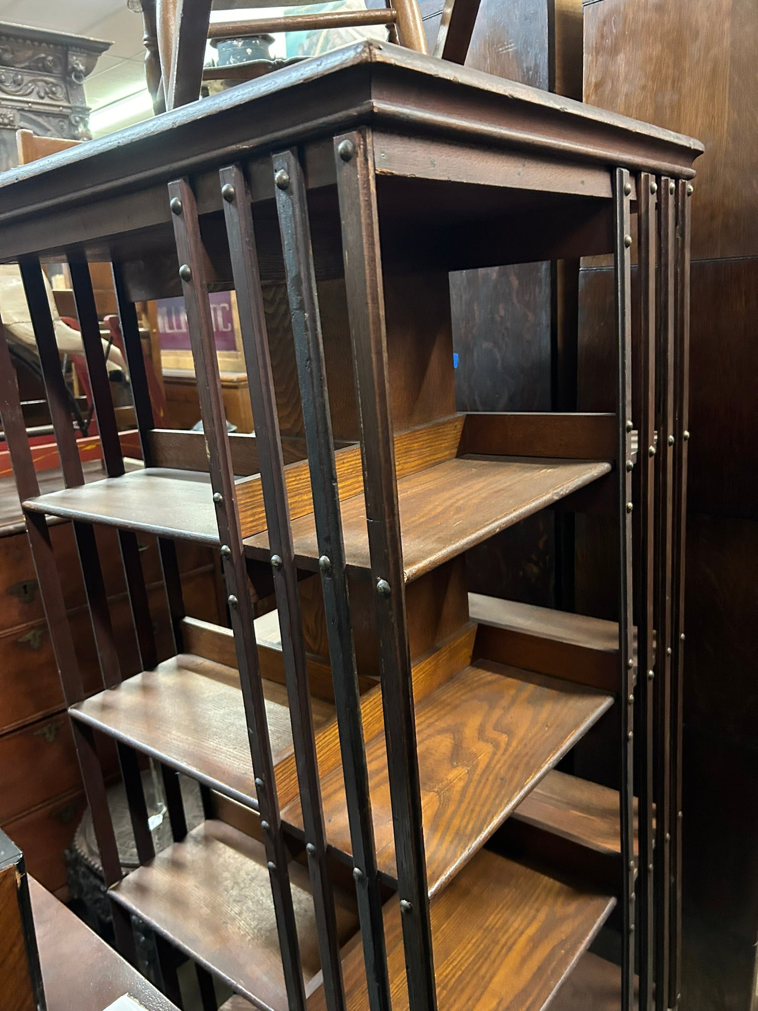 ANTIQUE OAK REVOLVING BOOKCASE 61" TALL X 22" SQUARE. CALL, TEXT, OR E-MAIL FOR MORE INFORMATION