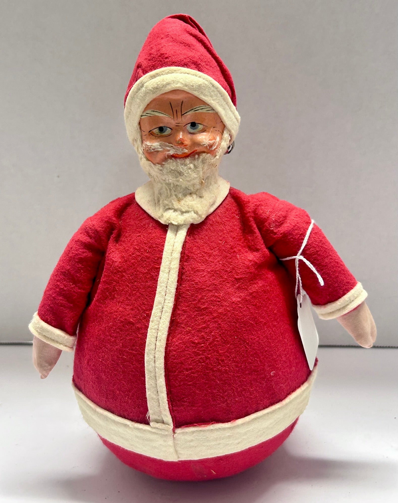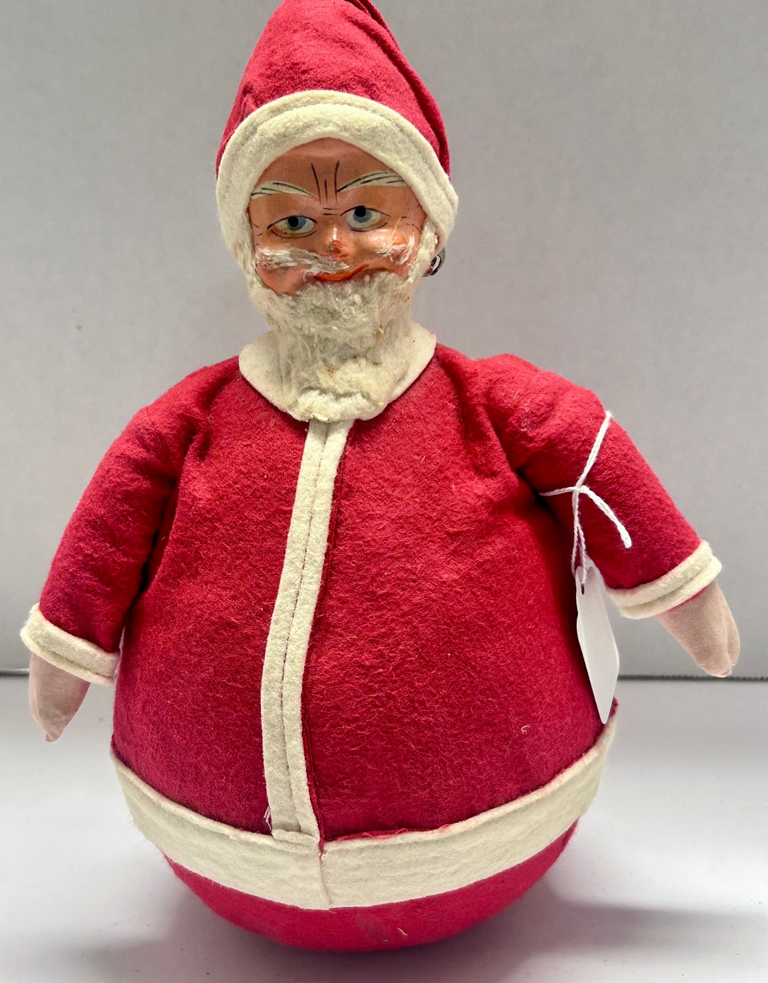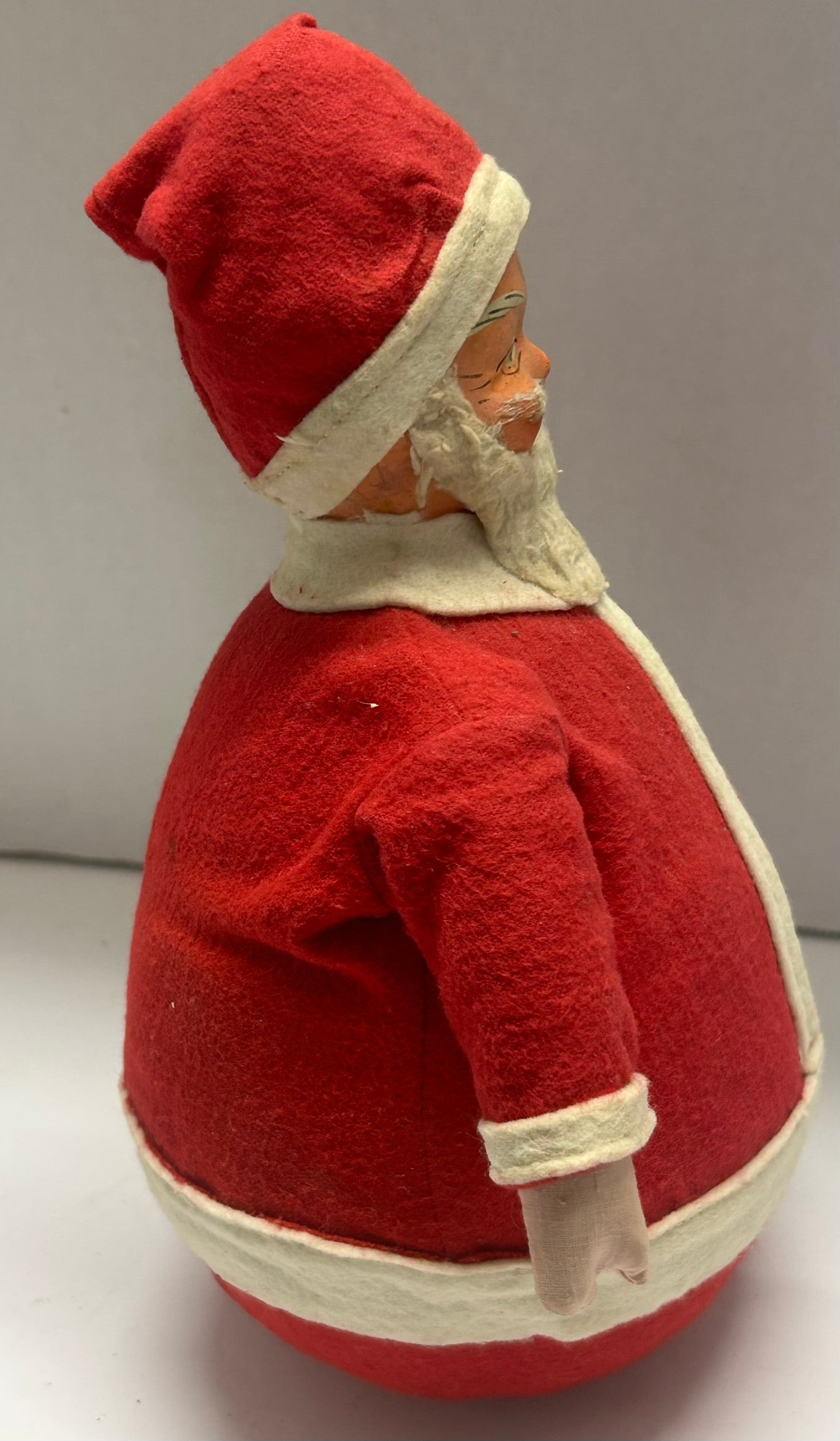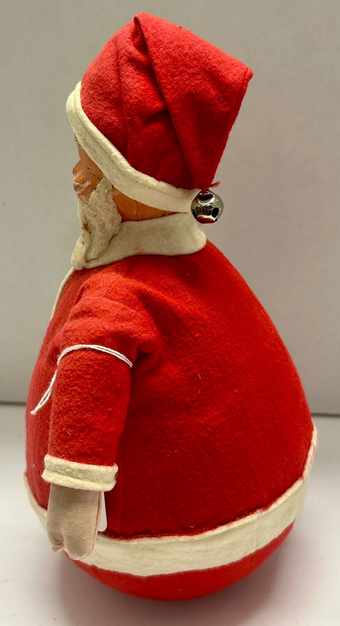 ROLLY POLLY SANTA ANTIQUE UNUSUAL WITH FELT CLOTHES AND CHIMES