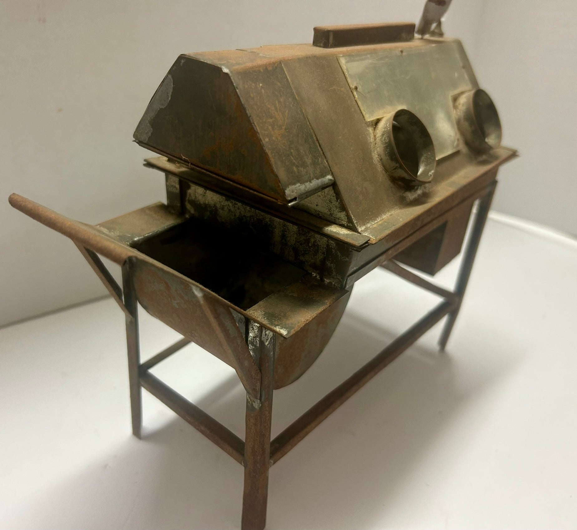 SAMPLE OR MODEL OF EARLY SAND BLASTING MACHINE 9 1/2" LONG X 9" TALL. CALL OR TEXT FOR MORE INFORMATION