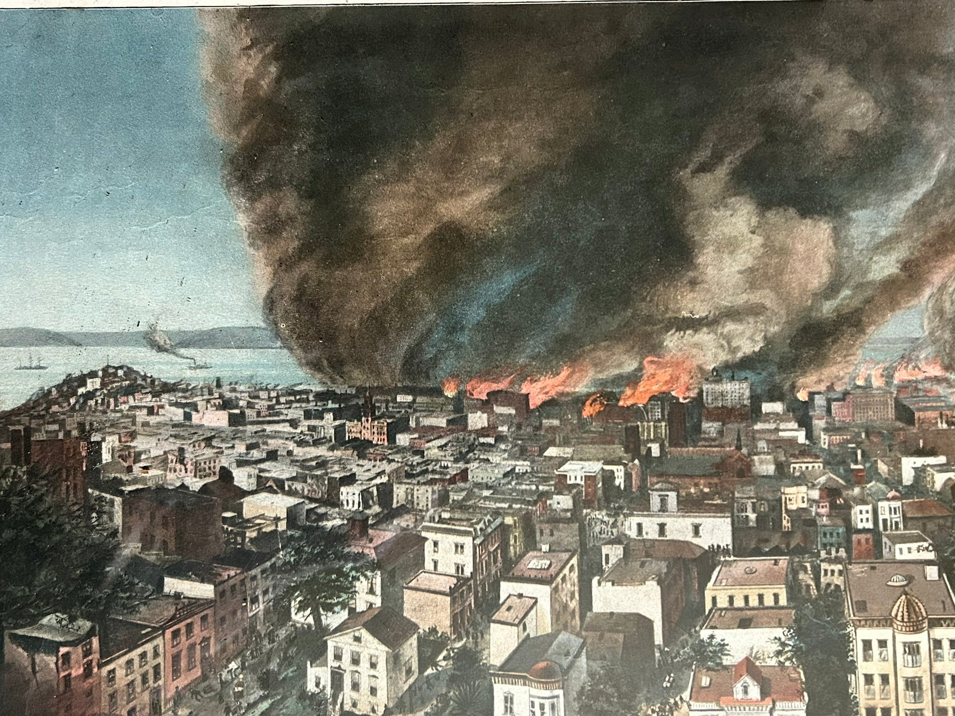 SAN FRANCISCO FIRE AND EARTHQUAKE 1906 RARE LARGE COLORED PRINT