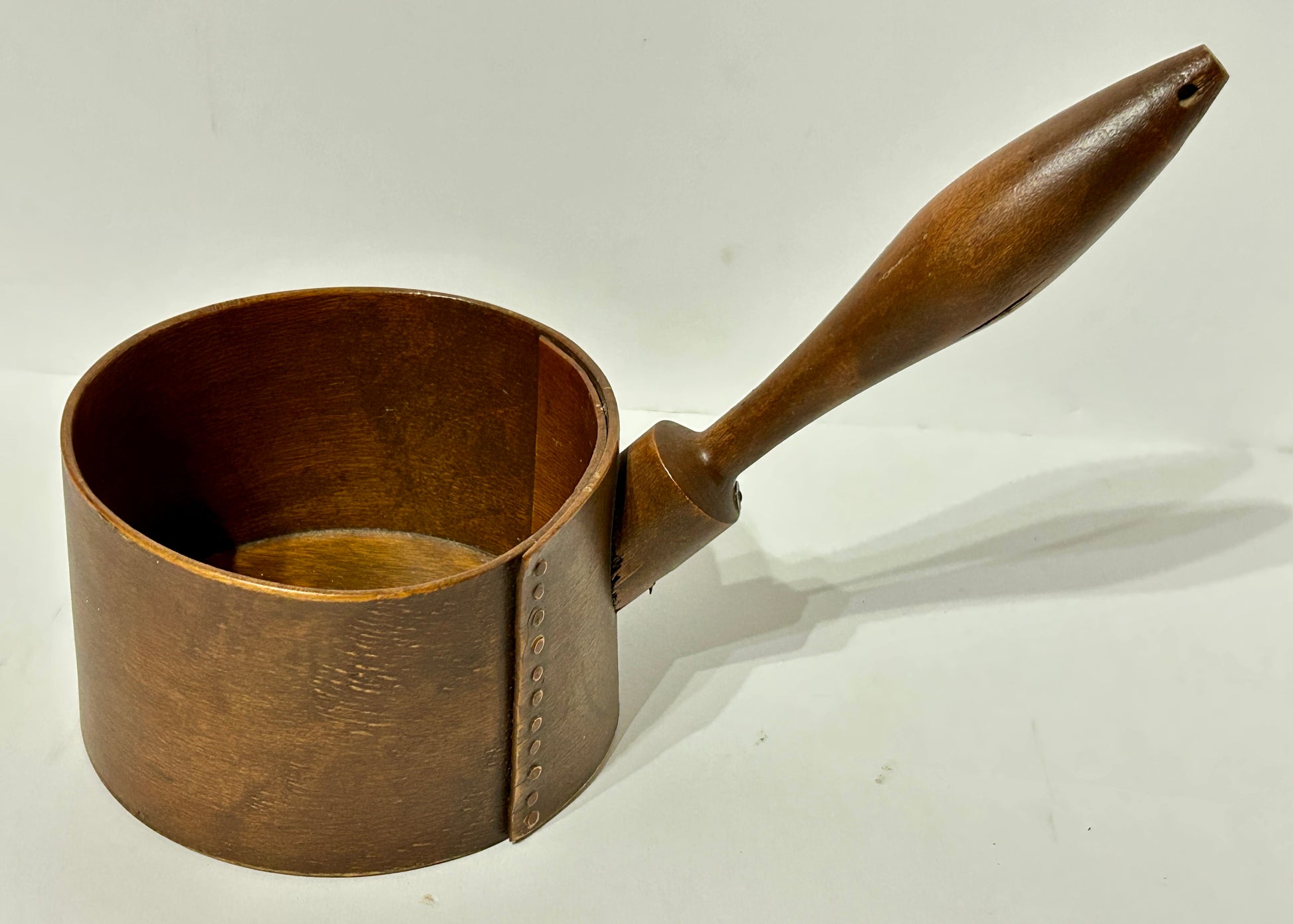 SHAKER WOOD DIPPER 5 1/2" DIAMETER X 11" LONG X 8" TALL TO TOP OF HANDLE. CALL OR TEXT FOR MORE INFORMATION