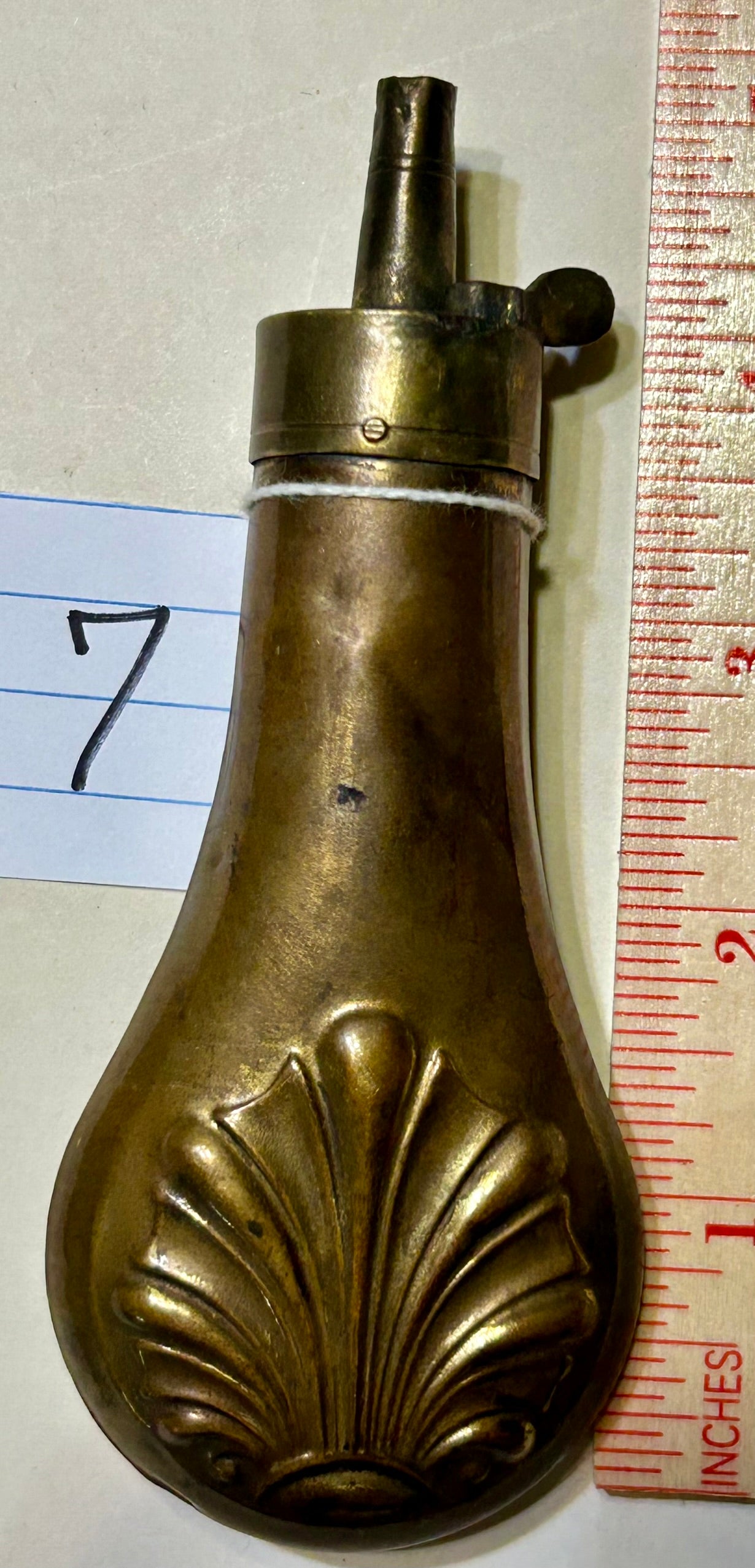ANTIQUE SHELL DESIGN PISTOL FLASK. CALL OR TEXT FOR MORE INFORMATION