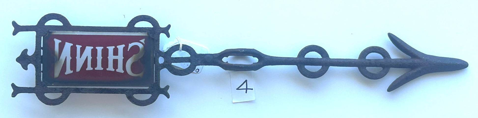 ANTIQUE SHINN LIGHTNING ROD ARROW WITH ENGRAVED RUBY GLASS TAIL 18" LONG. CALL OR TEXT FOR MORE INFORMATION