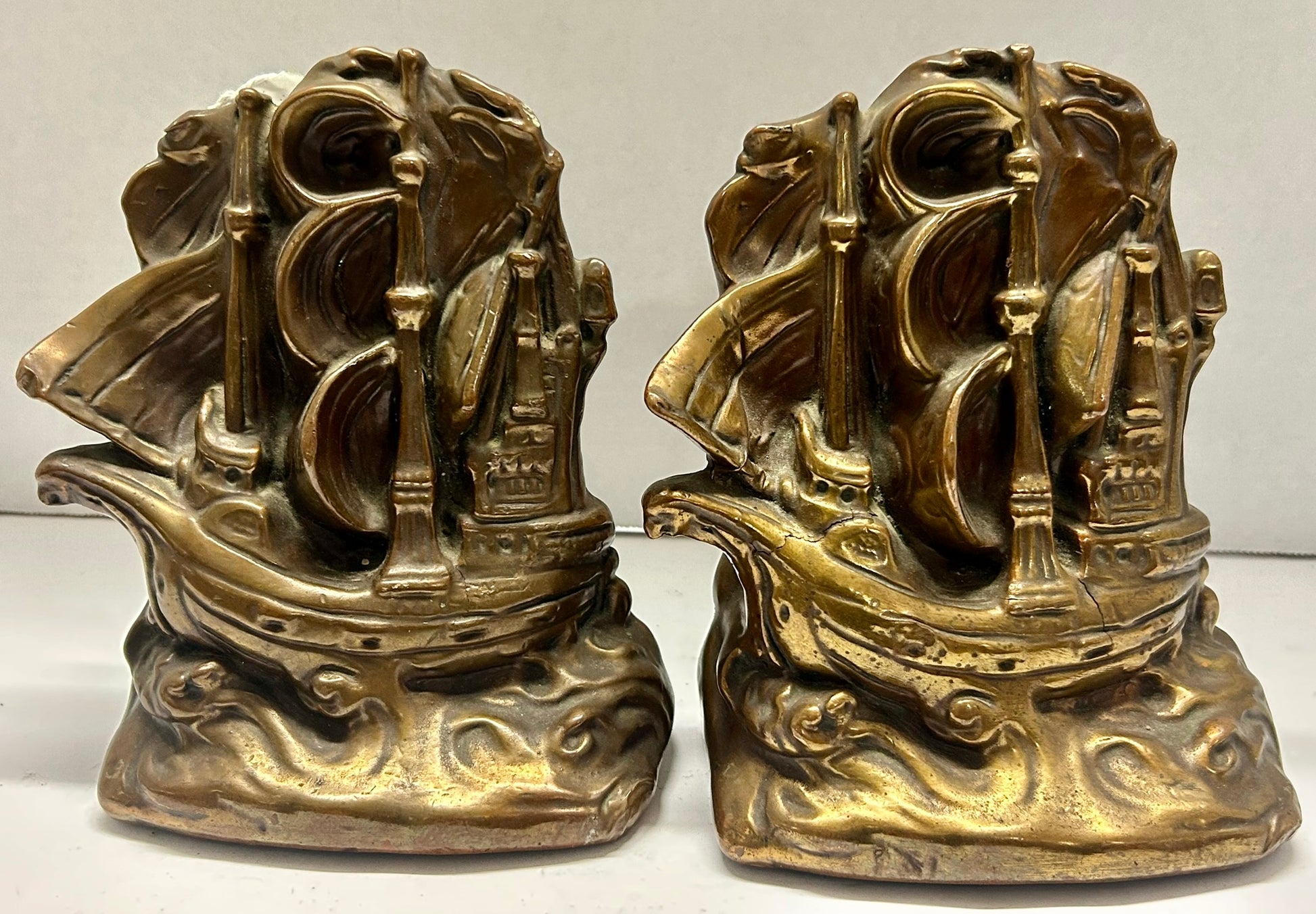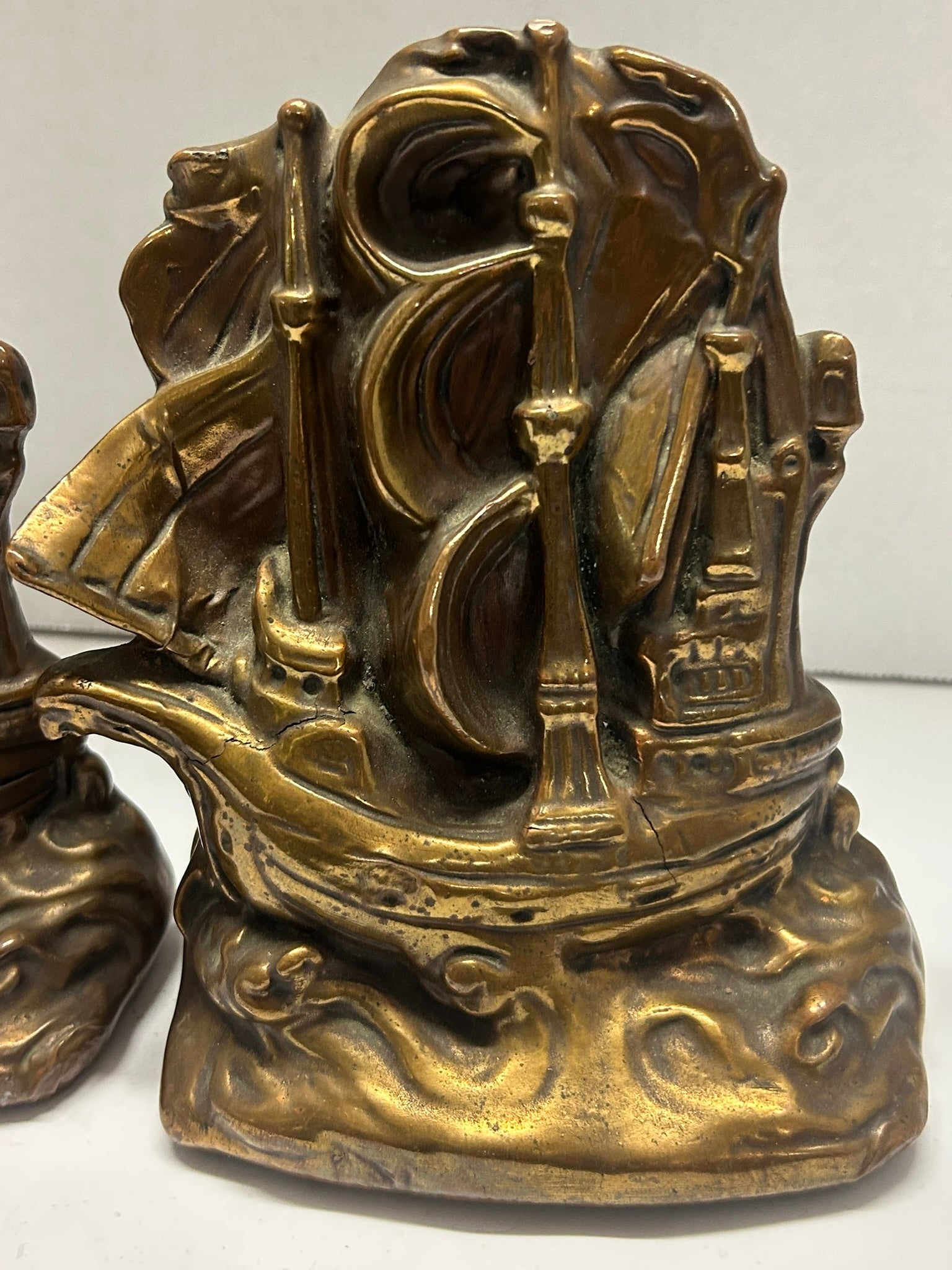 PR. BRONZE CLAD SHIP BOOKENDS 7 1/2" TALL X 5 1/2" WIDE. CALL OR TEXT FOR MORE INFORMATION