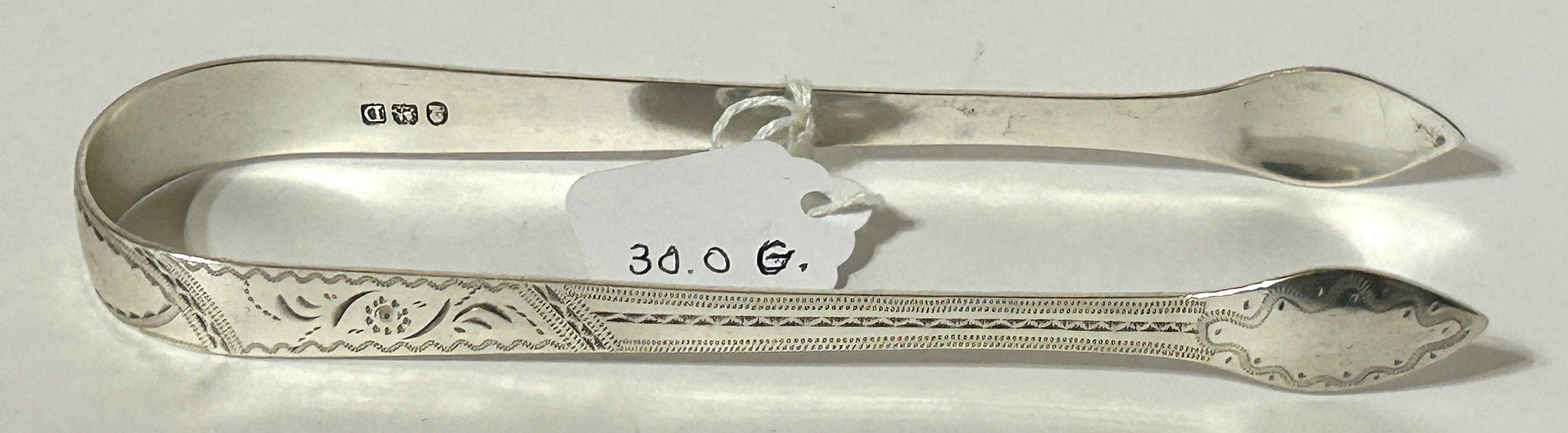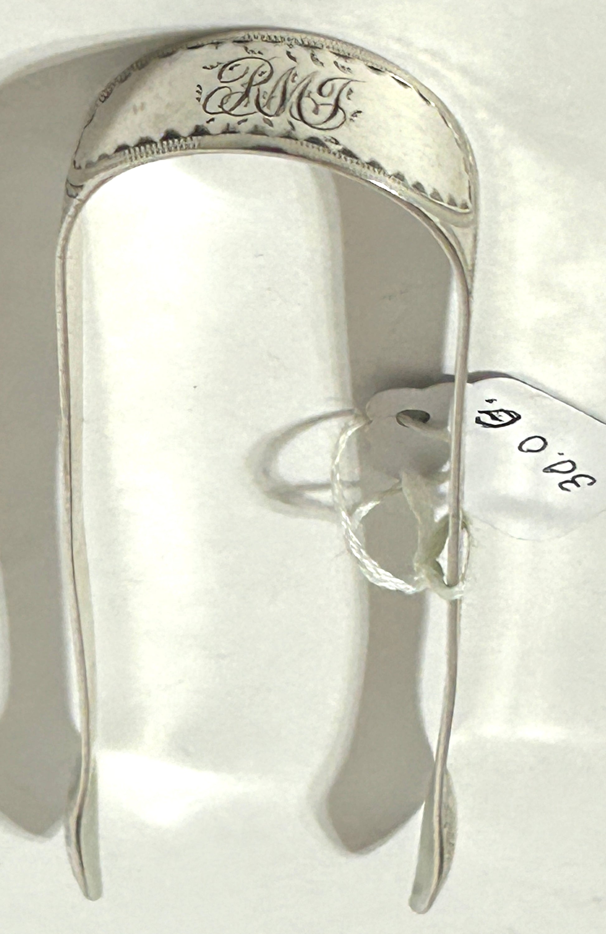 ANTIQUE SILVER TONGS BY GEORGE BOWER OF LONDON CIRCA 1820 - 5 1/4" LONG AND WEIGHT 30,0 GRAMS. SHIPPING IS EXTRA SO CALL OR TEXT TO FIND OUT HOW MUCH SHIPPING WILL COST