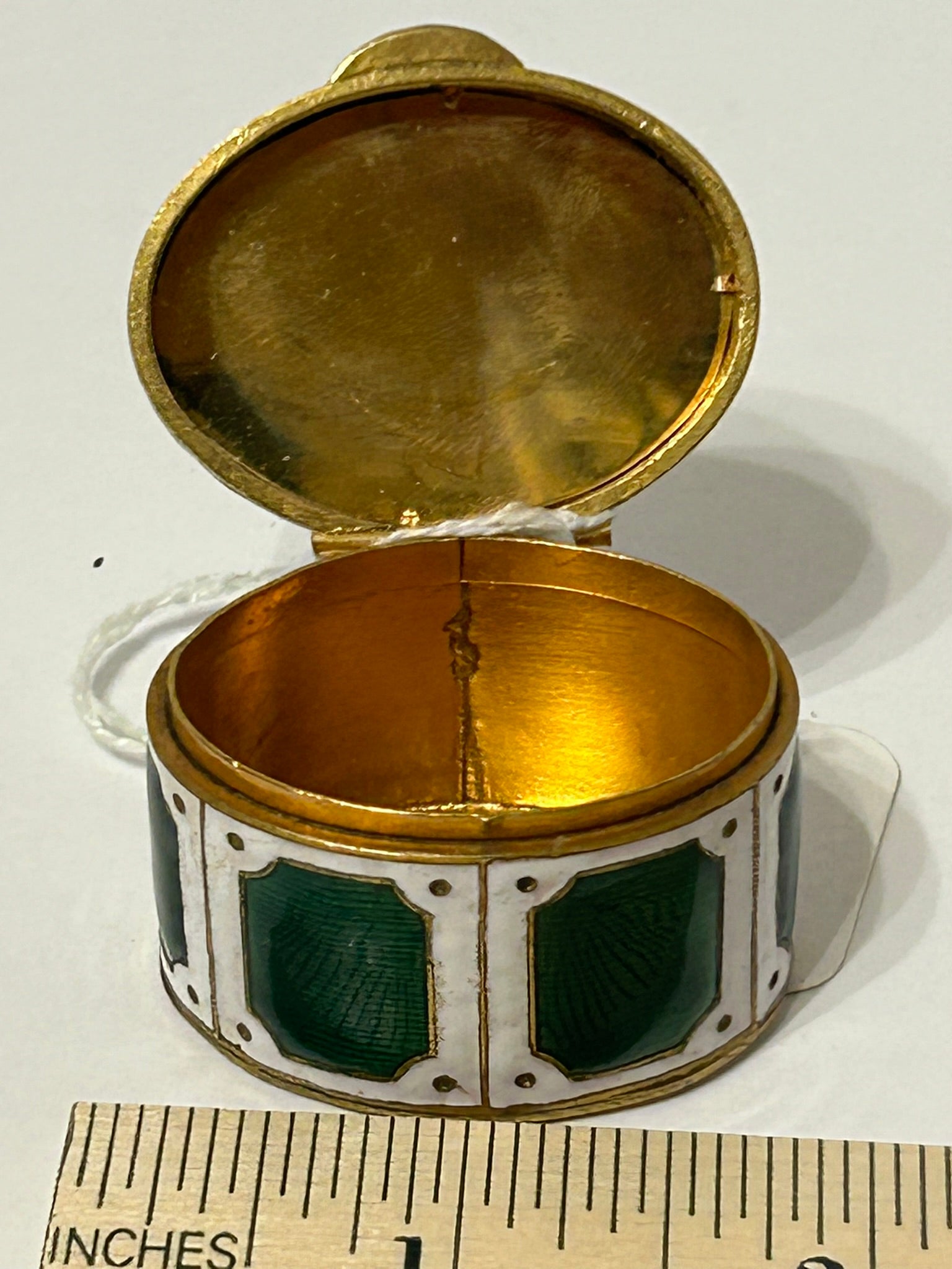 ITALIAN GREEN AND WHITE ENAMELED SNUFF BOX. CALL OR TEXT FOR MORE INFORMATION