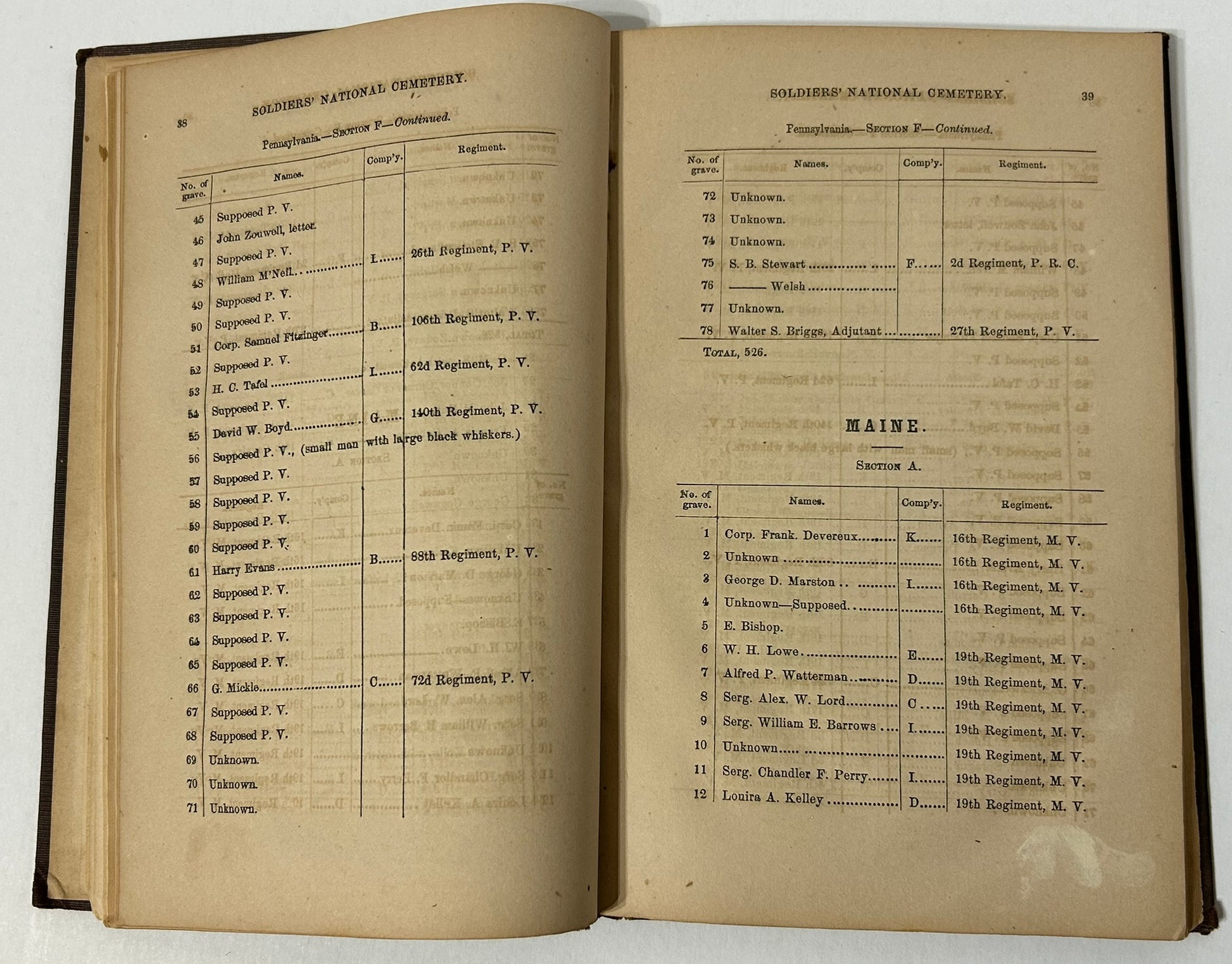 SOLDIERS NATIONAL CEMETERY GETTYSBURG 1865 BOOK